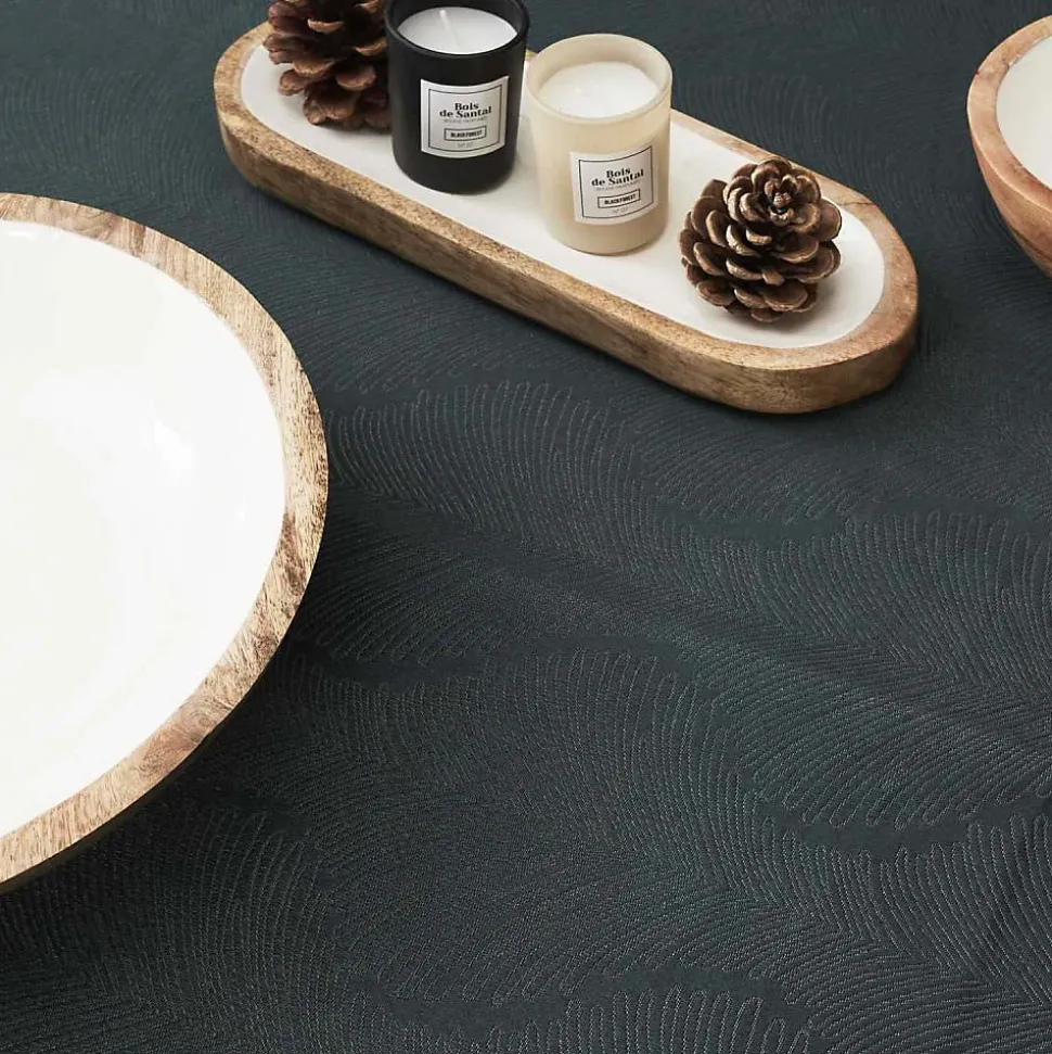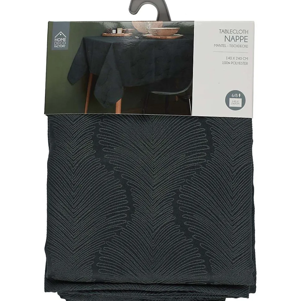 Aspect : Coloris = Noir • Matériau principal = Polyester • Matériaux secondaires = Polypropylène , Papier • Dimensions : Hauteur (en cm) = 0.1 • Longueur (en cm) = 140 • Profondeur (en cm) = 240 • Autres caractéristiques : Poids (en kg) = 0,52 • Nappe jacquard Black forest 140 x 240 cm