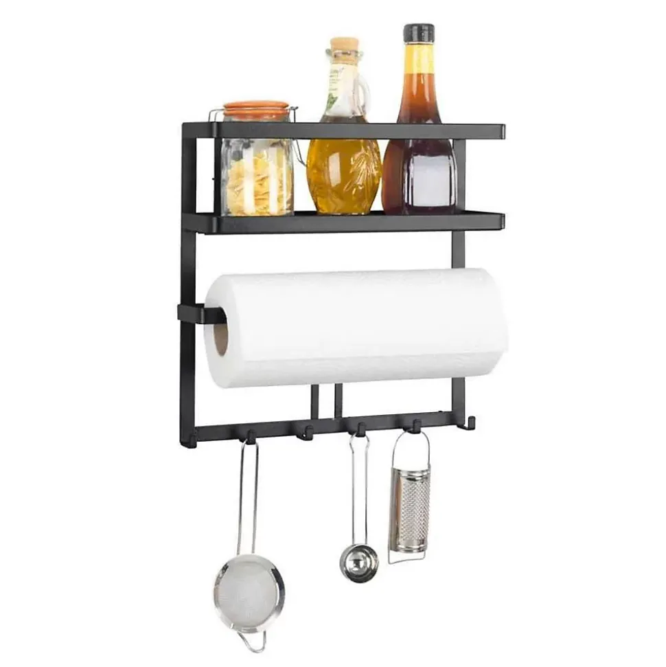 Optez pour une combinaison parfaite d’esthétique et de fonctionnalité avec notre étagère multifonctionnelle en métal noir. Conçue pour s’intégrer harmonieusement dans les cuisines modernes, cette étagère est un ajout indispensable pour ceux qui recherchent un espace de rangement optimisé et efficace. L’étagère est équipée d’une étagère principale, d’un porte-rouleau et d’une tringle munie de 6 crochets, offrant ainsi un espace de rangement polyvalent pour vos ustensiles de cuisine, essuie-tout et autres accessoires. Chaque unité est livrée avec des vis et des chevilles pour un montage sécurisé. FICHE TECHNIQUE- Organiseur de cuisine mural- Matière : Métal – Couleur : Noir- Vis et chevilles fournis CARACTERISTIQUES TECHNIQUES- Dimensions : Longueur 30 cm X Largeur 9 cm X Hauteur 33 cm- Distance entre les trous de la corbeille : env. 20 cm- Poids : 1,2 kg