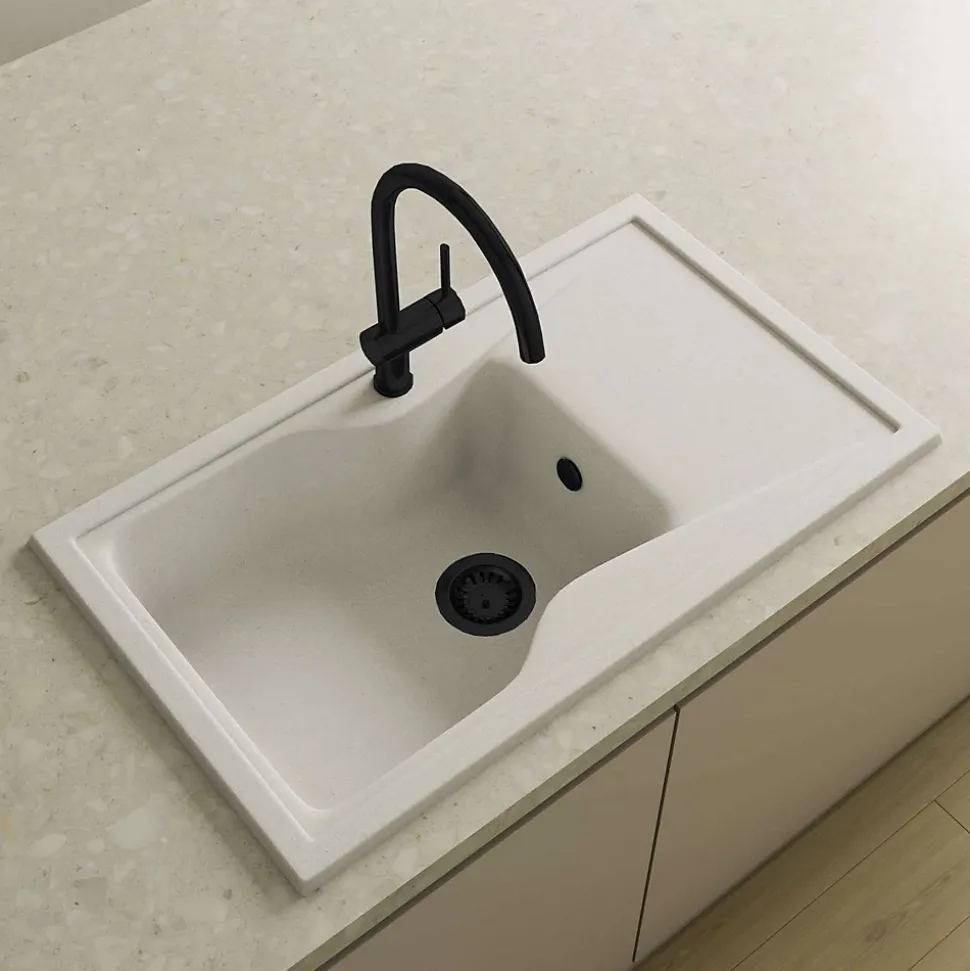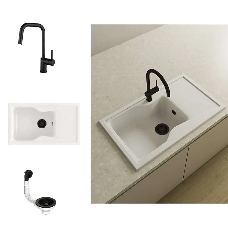 Pack Evier 1 bac avec égouttoir POALGI City Snow + mitigeur avec douchette + bonde noire