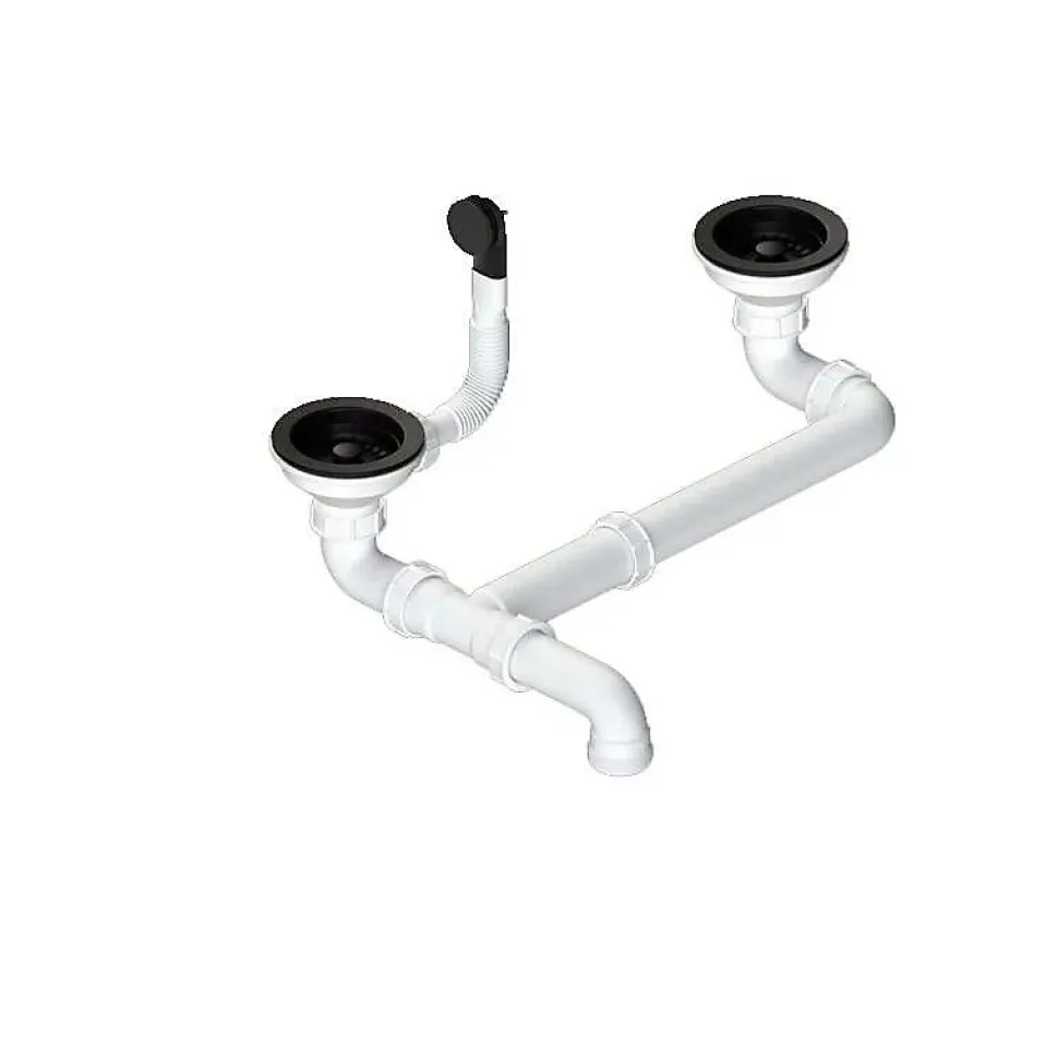 Pack évier à installation sur plan (à encastrer) avec deux cuves + un mitigeur avec douchette extractible + une bonde avec trop pleinRésistance aux rayures, à l’abrasion, à la chaleur (185°C), aux agents chimiques et aux colorants selon les tests UNE-EN 13310 -> Sans altérationLivré avec bonde manuelle carré, siphon et colle mastic.