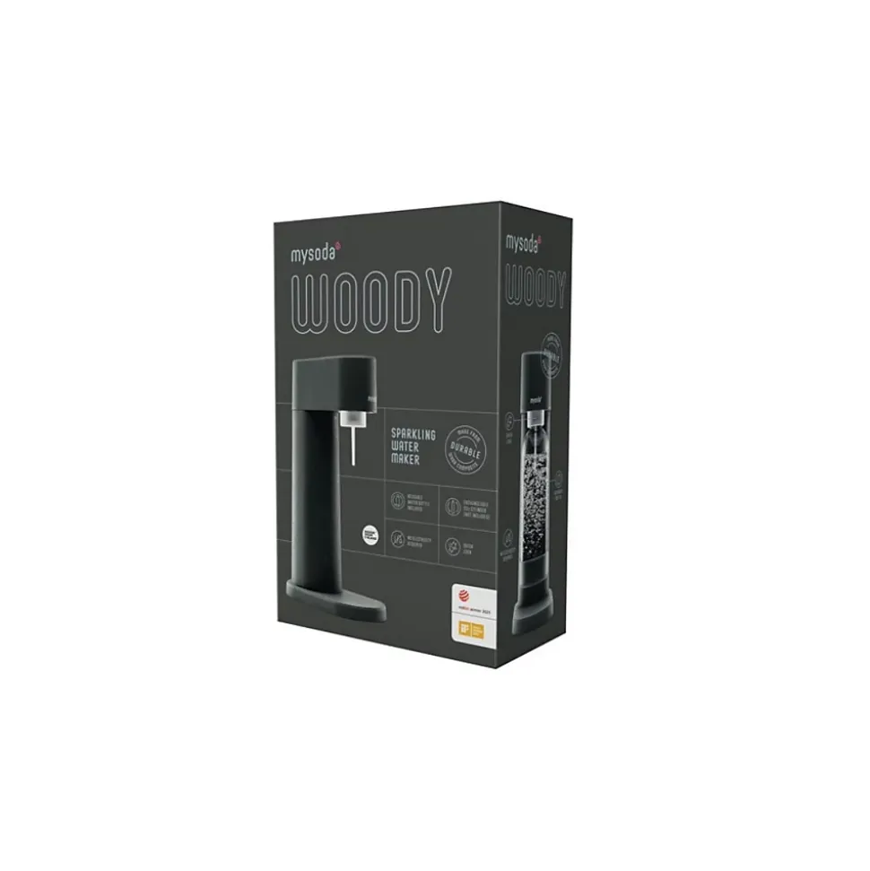 Pack machine à gazéifier l’eau + 1l bouteille – noir Mysoda – Machine à gazéifier noir Woody EUR-WD002F-B-FR de Mysoda. Cette machine est l’aboutissement ultime de la durabilité et du design. Un doux parfum de bois apporte un petit bout de forêt dans votre cuisine et vous livre son secret. Au lieu d’utiliser du plastique d’origine fossile, le corps de l’appareil est fabriqué à partir de biocomposite presque entièrement renouvelable. Le biocomposite est composé de 40 % de fibres de bois et de 60 % de déchets de bois dérivés (polypropylène). Finition unique avec des fibres de bois subtilement visibles. Les fibres de bois augmentent considérablement la rigidité et la résistance de la matière. Fonctionne sans pile ni électricité pour une utilisation à n’importe quel endroit de votre cuisine. Cette machine est particulièrement silencieuse lors de la gazéification et dispose d’un mécanisme pratique de fermeture des bouteilles de gazéification (système à baïonnette). – Type de produit : Machine à gazéifier.Gamme : Woody.Capacité : 1 L.Matériaux : Plastique PET et biocomposite.Type de fonction : Sans pile ni électricité.Finition : Fini mat avec de subtils éclats de bois apparents.Pack prêt à l’emploi comprenant 1 machine à gazéifier, 1 cylindre de CO2 rechargeable (permettant de réaliser jusqu’à 60 L d’eau pétillante) et 1 bouteille de gazéification d’une capacité de 1 L en plastique PET et biocomposite.Couleur : Noir.Dimensions : 24.5 x 13 x 40.8 cm.