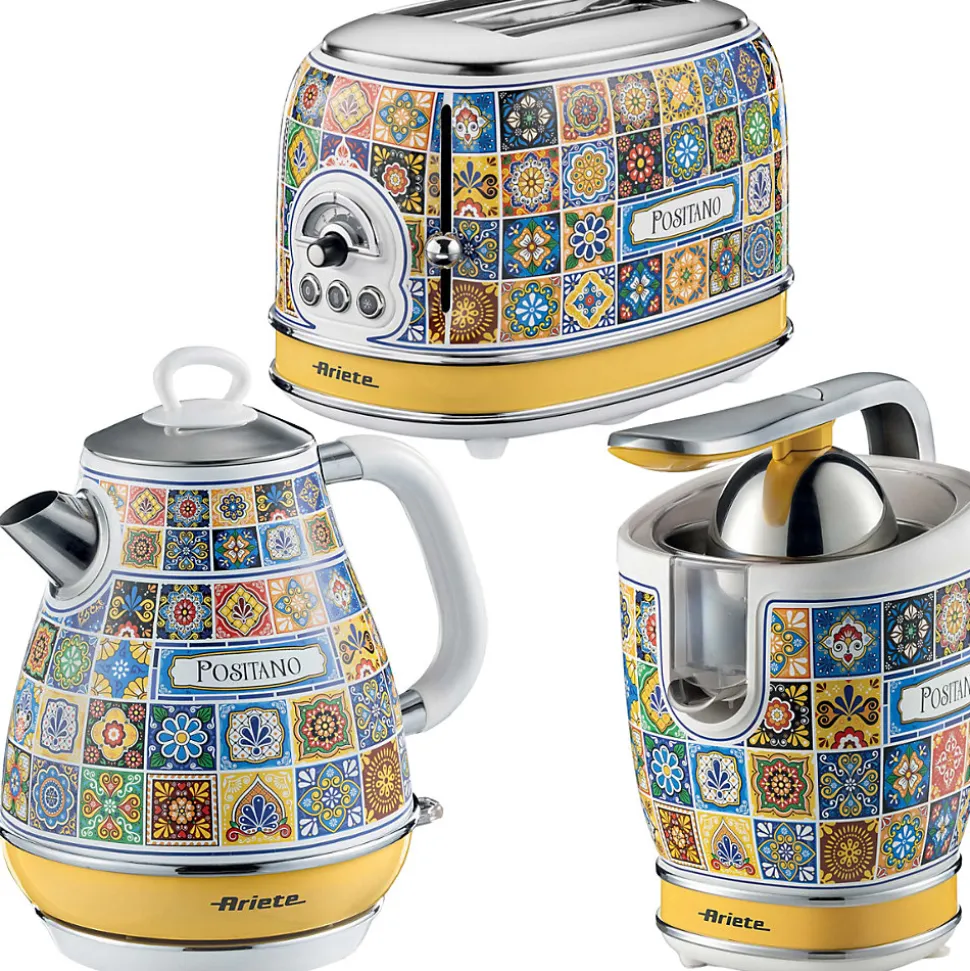 Et si votre cuisine devenait un véritable écrin de style et d’élégance vintage ? Avec le pack Ariete Positano, chaque détail respire le charme rétro des années 50, revisité avec une touche contemporaine. Bouilloire 1,7L, grille-pain 2 fentes et presse-agrumes s’unissent dans une couleur exclusive Positano, lumineuse et sophistiquée, qui transforme votre espace en un lieu à la fois chaleureux et inspirant.Ce pack comprend :ARIETE Bouilloire Vintage Positano 1.7L Design RétroARIETE Grille-pain Vintage Positano 2 fentes 810W Design RétroARIETE Presse-agrumes Vintage Positano 85W Design rétroDescription de la bouilloire :Apportez une touche de dolce vita à votre cuisine avec la bouilloire Ariete 2869 Positano 1.7L. Inspirée des paysages pittoresques de la côte amalfitaine, sa couleur Positano exclusive évoque l’élégance et la sérénité italienne. Avec son design rétro intemporel et ses performances modernes, elle allie style et praticité pour sublimer vos moments de dégustation. Un bijou incontournable pour les amoureux du beau et du bon.Caractéristiques :Capacité : 1.7LPuissance : 1850-2200WNiveau d’eau visible : OuiFiltre à thé amovible : OuiArrêt automatique : OuiMatière : Acier inoxidableCouleur : Edition spéciale Positano<span style= »text-decoration:und
