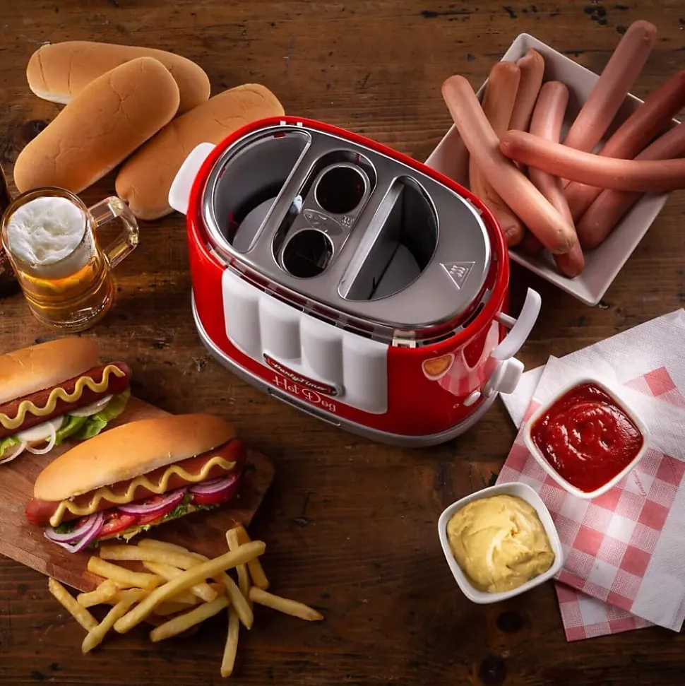 Vous adorez les hot dogs et souhaitez les préparer facilement à la maison ? Avec la Machine à Hot Dog Ariete Party Time Rouge 206, c’est un jeu d’enfant ! Cet appareil vous permet de réaliser des hot dogs en un rien de temps. Son design rétro et amusant apportera une touche de style à votre cuisine tout en garantissant une performance optimale.Grâce à sa conception ingénieuse, cette machine peut griller parfaitement les saucisses tout en chauffant simultanément les pains, pour un résultat digne des meilleures fêtes foraines. Que ce soit pour une soirée entre amis, un anniversaire ou simplement un dîner en famille, l’Ariete Hot Dog Maker est le compagnon idéal pour réussir à coup sûr vos repas.L’appareil est simple d’utilisation, avec des commandes intuitives, et son grille-pain intégré est capable de chauffer deux pains à hot dog en quelques minutes. De plus, les accessoires amovibles, comme les pics pour chauffer les pains et les récipients de cuisson, facilitent grandement le nettoyage après chaque utilisation.Le design compact de la machine permet un rangement facile, même dans les cuisines de petite taille, et son look rétro en rouge est parfait pour compléter la gamme Party Time d’Ariete.Caractéristiques principales :Préparation rapide de hot dogs grâce au système de cuisson intégréGrille saucisses et chauffe pains simultanémentAccessoires amovibles pour un nettoyage facileDesign rétro inspiré des années 50 en rougeRangement compact, idéal pour toutes les cuisinesIdéal pour des repas conviviaux en famille ou entre amisAvec la Machine à Hot Dog Ariete Party Time 206, vos soirées et repas ne seront plus jamais les mêmes. Un appareil pratique, stylé et performant pour des moments gourmands réussis !