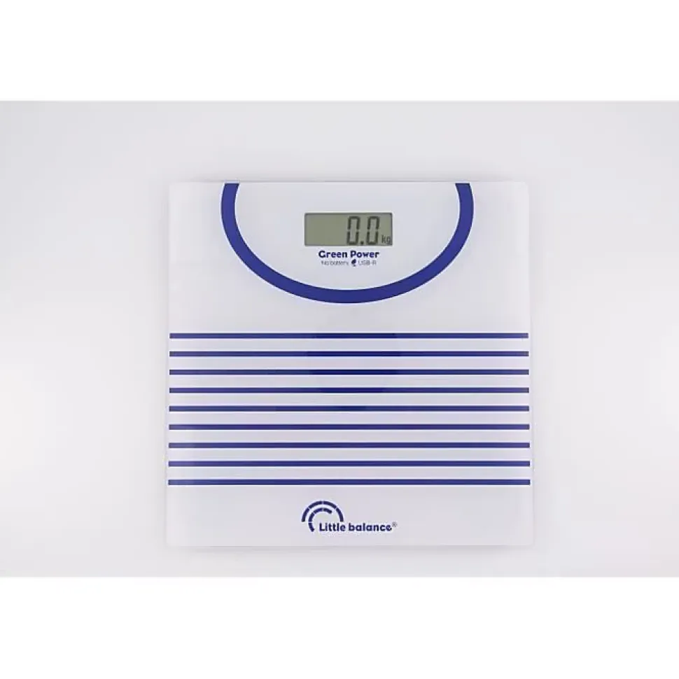 Pèse-personne électronique LITTLE BALANCE 8655 Marinière 30×30 cm, verre trempé, rechargeable USB, accu remplaçable, 180 kg / 100 g, écran LCD.