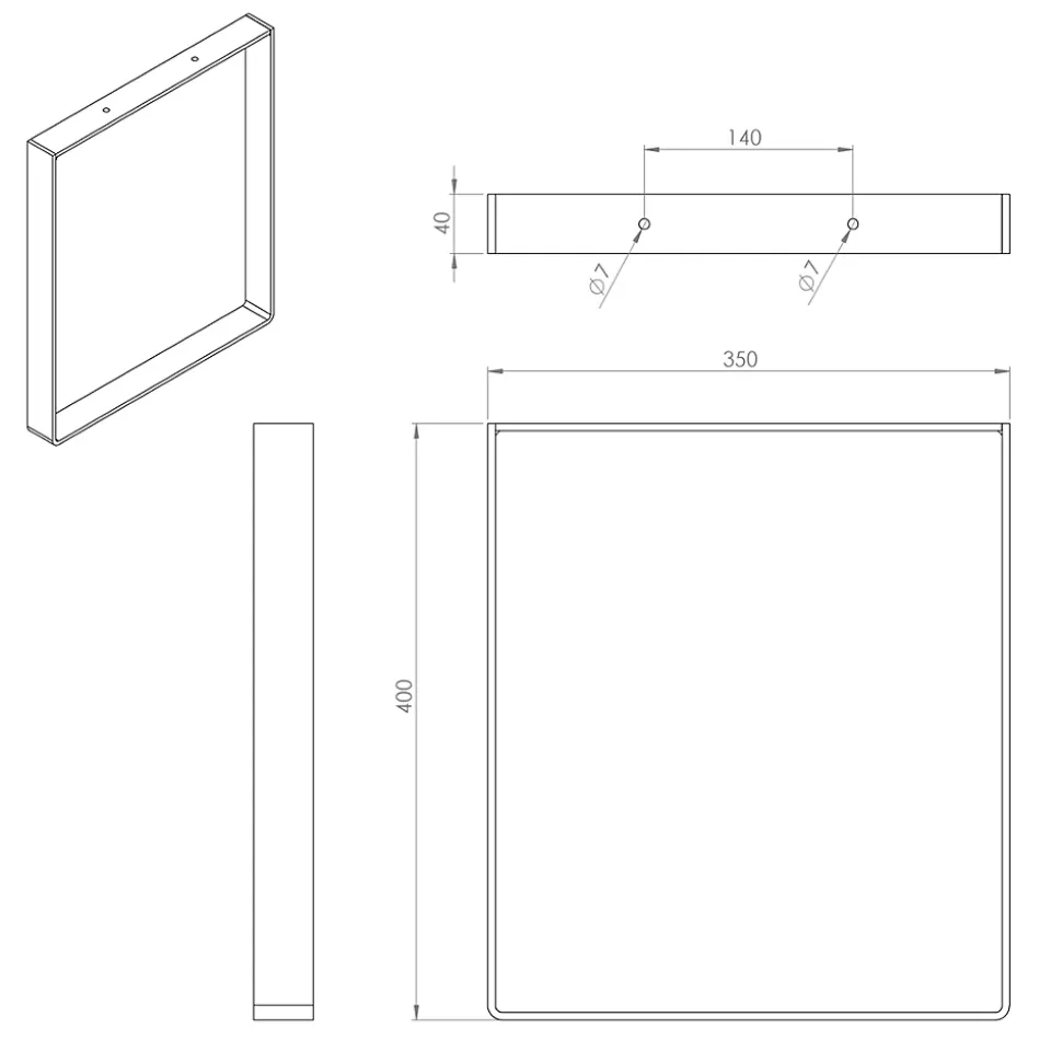 Pied de meuble cadre en acier noir Cime H. 40 cm