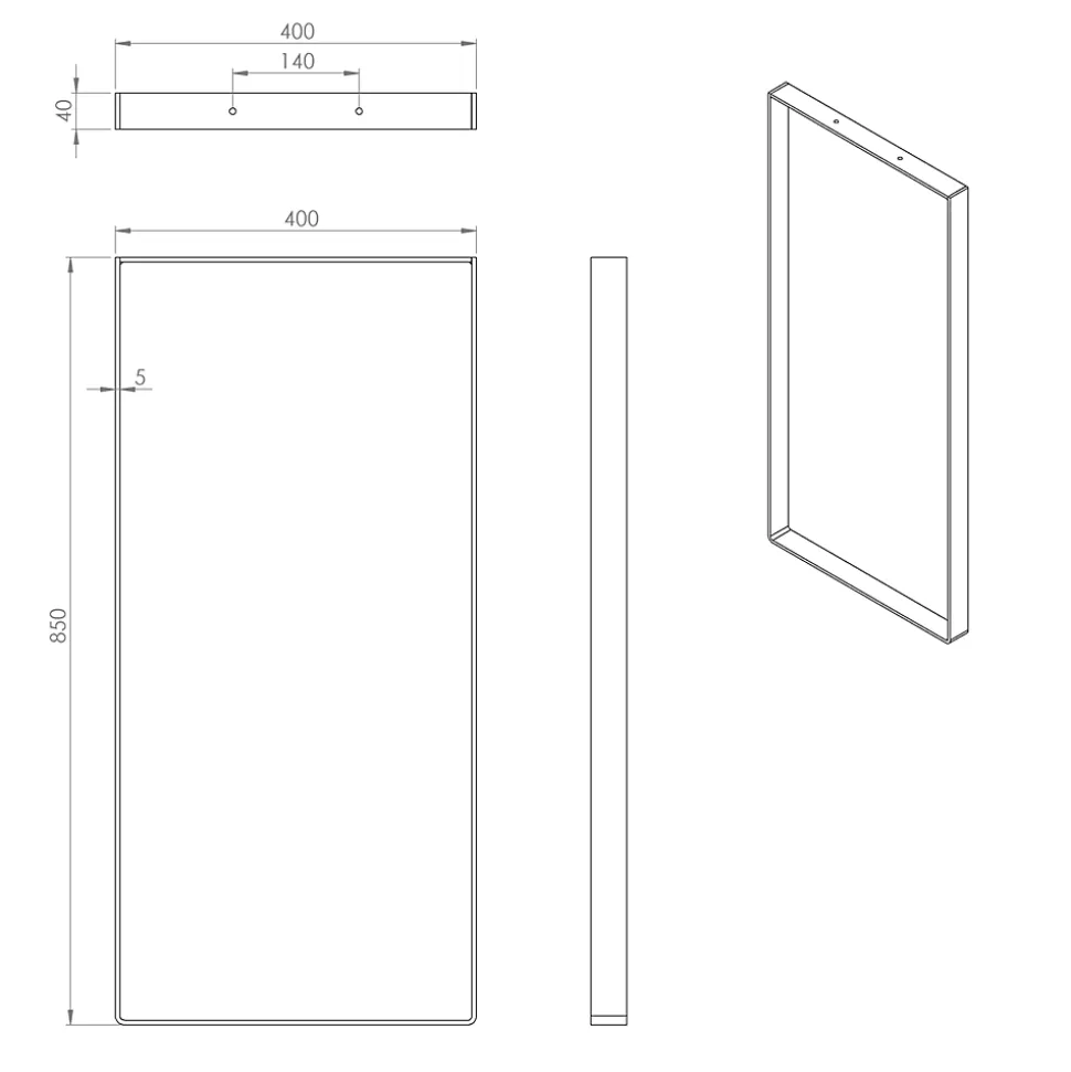 Pied de meuble cadre en acier noir Cime H. 85 cm
