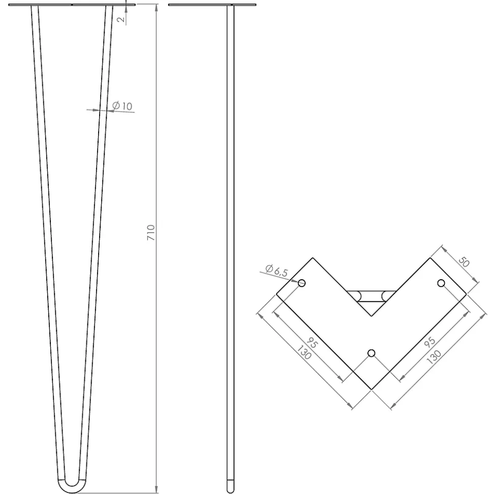 Pied de meuble en triangle en acier noir Cime H. 71 cm
