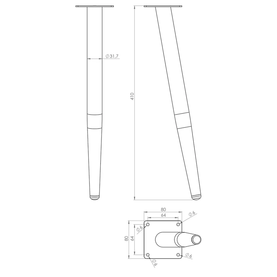 Pied de meuble fuseau en acier noir Cime H. 41 cm