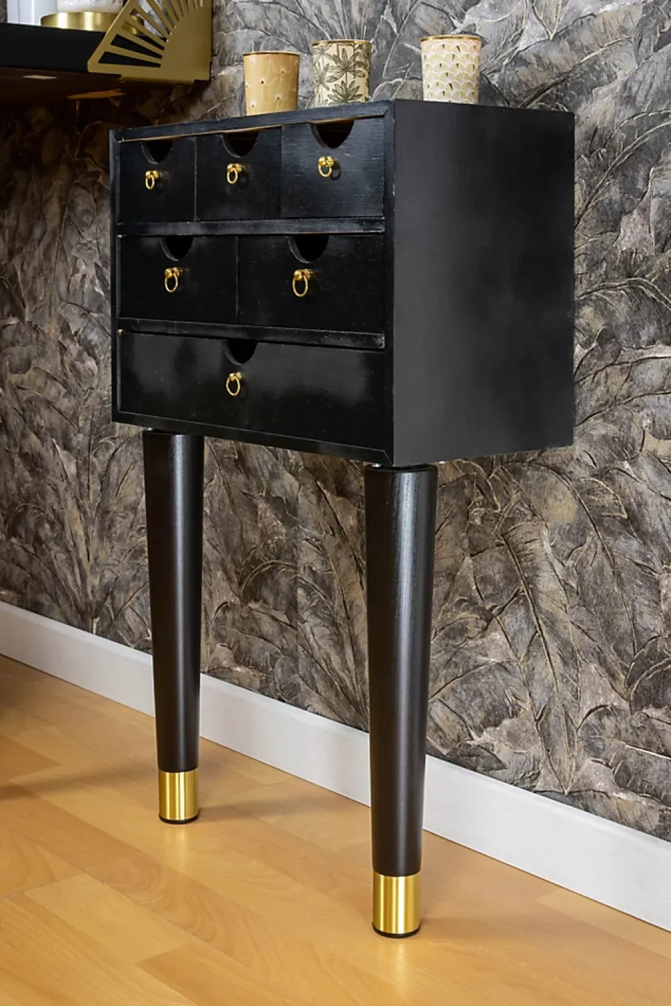 Pied de meuble fuseau en bois noir et doré Cime H. 37 cm