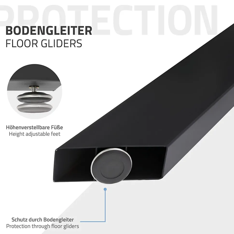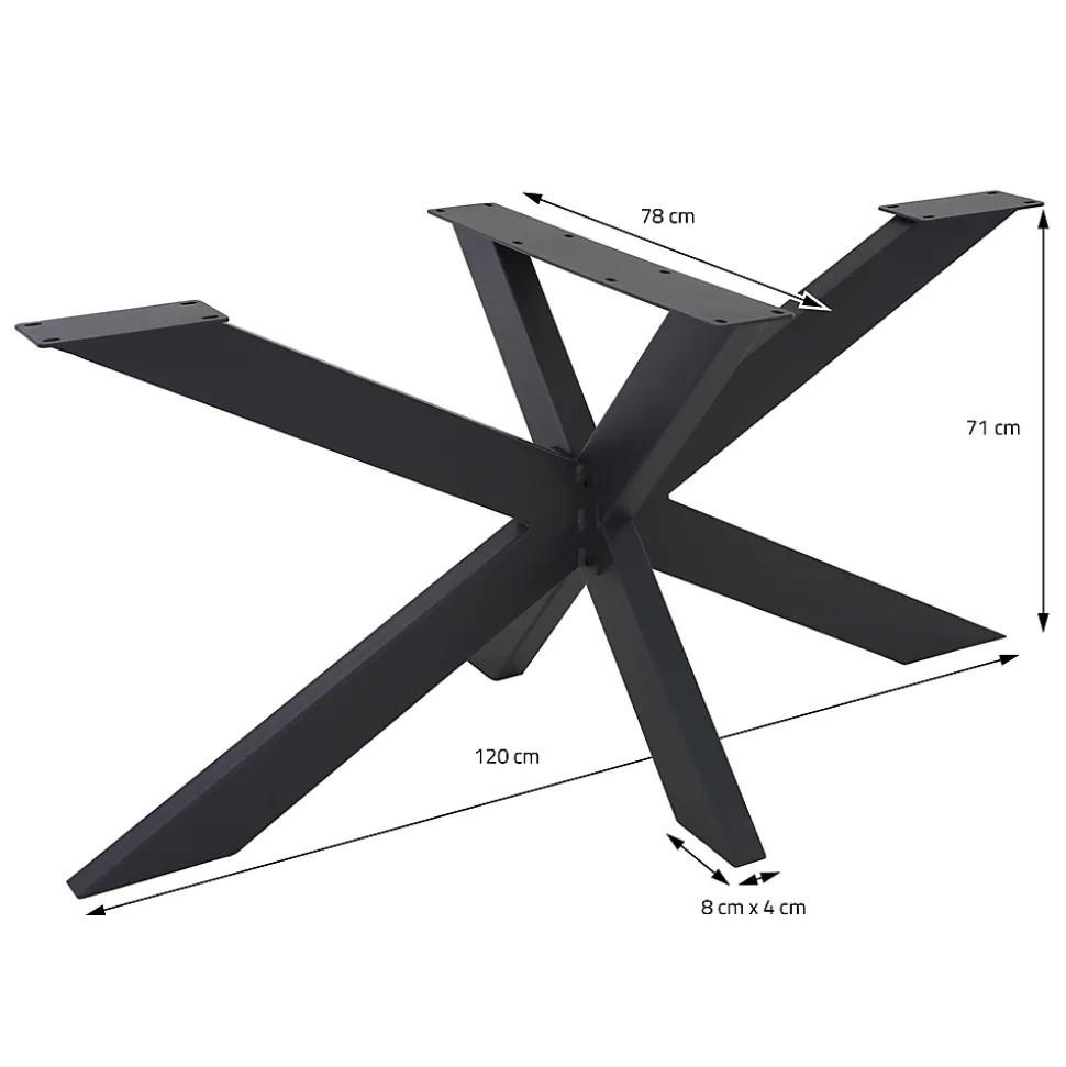 Livraison:1 x Pieds de tableInformation technique:Couleur: noirPoids: environ 18 kgMatériau: métal, revêtement en poudrePoints de fixation: 2 x 8Dimensions (LxHxP) : environ 78 x 71 x 120 cmÉpaisseur du matériau : environ 8 x 4 cmCaractéristiques:Haute qualitéMatériau antirouilleCaractère industrielProtection du sol incluseTrous pré-percés dans chaque piedConvient à tous les intérieursPeut supporter des articles jusqu’à 150 kgConstruction robuste et durableFabriqué en métal robuste, recouvert de poudrePour la cuisine, le salon, le bureau et bien plus encoreDescription:Ces pieds de table de ML-Design donnent à votre table un caractère industriel. Les pieds de table conviennent parfaitement comme base de table dans la cuisine, pour une table à manger ou un bureau. Ils sont fabriqués en acier revêtu de poudre et sont de haute qualité. Ainsi, une capacité de charge allant jusqu’à 150 kg est garantie.Les pieds de table tendance conviennent également à votre décoration intérieure moderne. Grâce à cet élément de design, vous créez une atmosphère fraîche pour votre intérieur. Construction très légère mais stable. L’aspect industriel stable, robuste et tendance est mis en valeur et, grâce à la simplicité de l’apparence, divers domaines d’application s’ouvrent.L’ensemble de la construction est non seulement stable mais aussi très esthétique. Nos pieds de table sont parfaits pour les plateaux de table faits d’une grande variété de matériaux, tels que le bois, le plastique, la pierre, etc. et le protecteur de sol inclus assure un support sûr et sans rayures sur le sol. Les trous pré-percés dans chaque pied rendent l’assemblage plus facile et plus pratique.