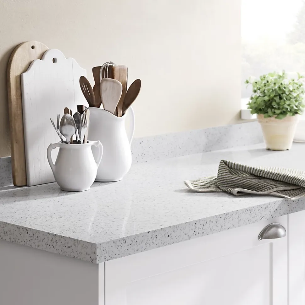 Plan de travail en stratifié aspect pierre blanche mouchetée GoodHome Berberis L. 300 x P. 62 x ép. 3,8 cm