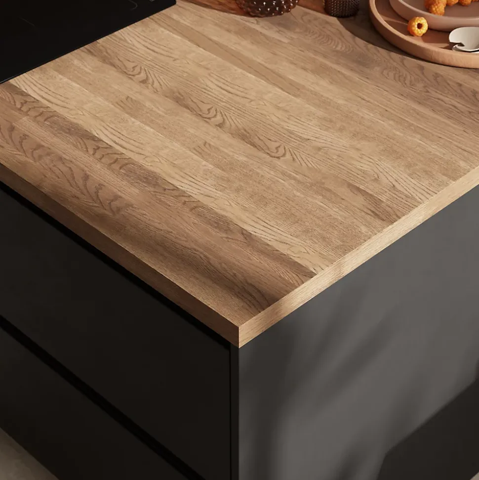 Plan de travail en chêne massif foncé GoodHome Hinita L. 300 x P. 62 x ép. 4 cm