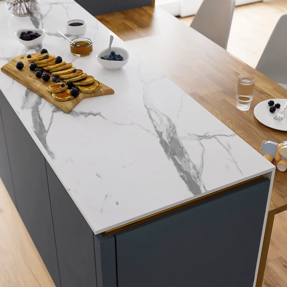 Plan de travail compact aspect marbre blanc GoodHome Nepeta L. 300 x P. 62 x ép. 1,2 cm