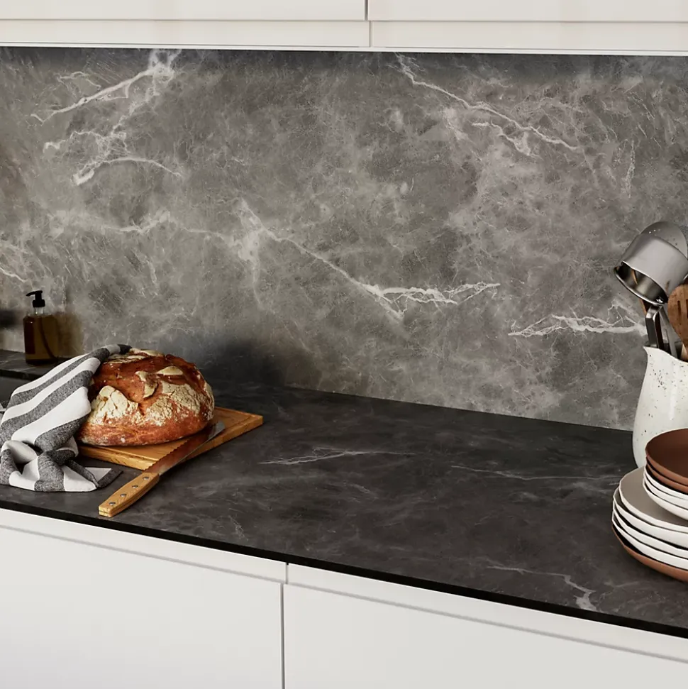 Plan de travail compact aspect marbre gris GoodHome Nepeta L. 300 x P. 62 x ép. 1,2 cm