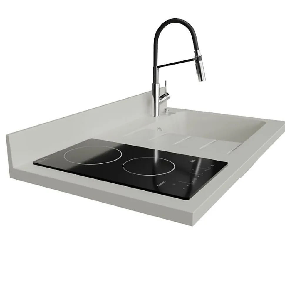 Plan de travail monobloc PlaniQuartz avec évier - 100 cm - Snova - évier à droite - Plaque de cuisson Vitrocéramique