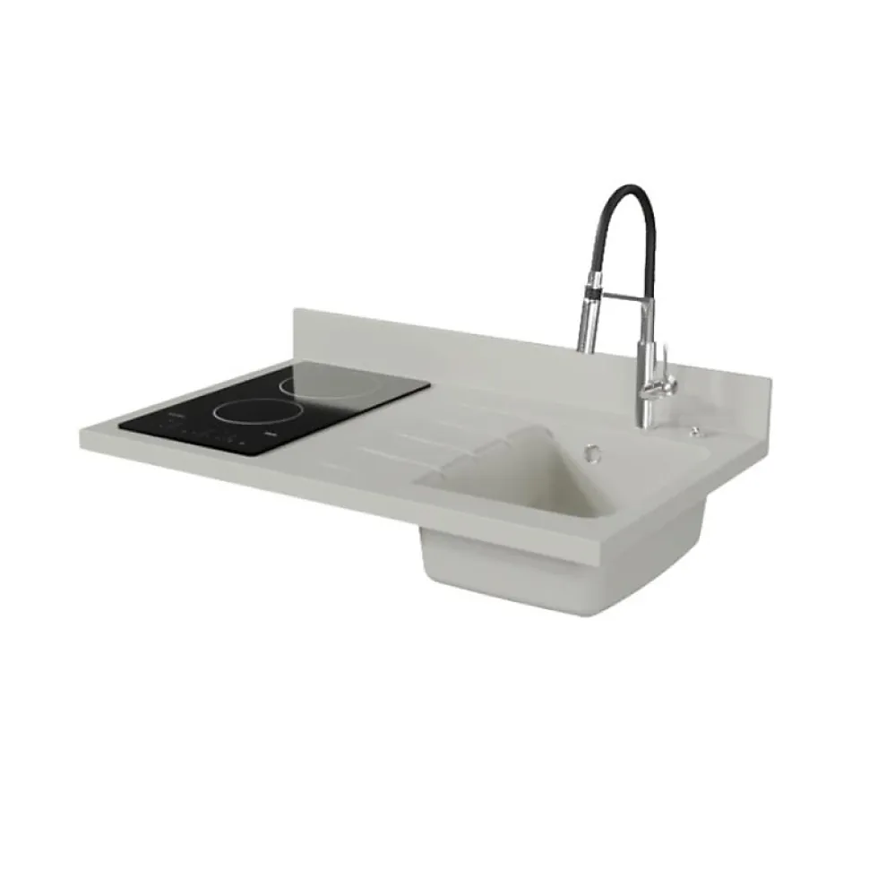 Plan de travail monobloc PlaniQuartz avec évier – 100 cm – Snova – évier à droite – Plaque de cuisson Vitrocéramique