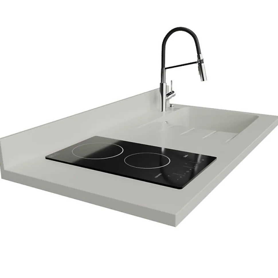 Plan de travail monobloc PlaniQuartz avec évier - 120 cm - Snova - évier à droite - Plaque de cuisson Vitrocéramique