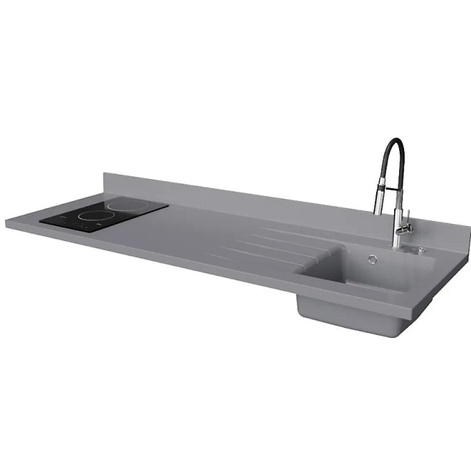 Plan de travail monobloc PlaniQuartz avec évier - 180 cm - Cromo - évier à droite - Plaque de cuisson Vitrocéramique