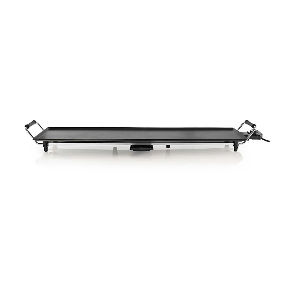 Plancha teppanyaki 1800w 90×23 cm Nedis – Avec plaque de grill de Nedis FCTE110EBK90, faites cuire vos aliments préférés avec cette plancha teppanyaki. Elle est équipée d’un thermostat réglable pour préparer toutes sortes de légumes, viandes et poissons à la perfection. La plancha dispose également d’un plateau récupérateur coulissant, pour une expérience culinaire à faible teneur en matière grasse.Un cordon d’alimentation amovible et un revêtement antiadhésif vous permettent de nettoyer l’appareil en un rien de temps. – Type de produit : Plancha.Puissance : 1800 W.Consommation électrique maximale : 1800 W.Tension d’entrée : 230 V AC 50 Hz.Matériau : Métal.Voyant : Oui.Type de source d’alimentation : Alimentation secteur.Fiche d’alimentation : Type F (CEE 7/7).Longueur du câble d’alimentation : 0.90 m.Collecteur de graisse amovible : Oui.Nombre de réglages de chaleur : 5 Réglages de Chaleur.Couleur : Noir.Surface de cuisson (l x l) : 90 x 23 cm.Largeur : 1015 mm.Hauteur : 113 mm.Profondeur : 265 mm.Taille (LxPxH) : 102.5 x 26 x 10.5 cm.Poids : 2870 g.