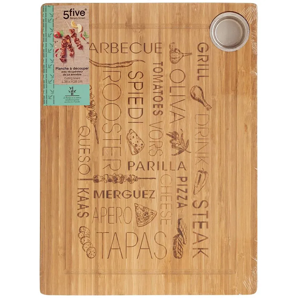 Dimensions : L. 38 x P. 28.00 cmPoids : 1,39 kgMatière de la structure : BambouMatière des éléments : AcierInclus : Rigole récupératrice de jus