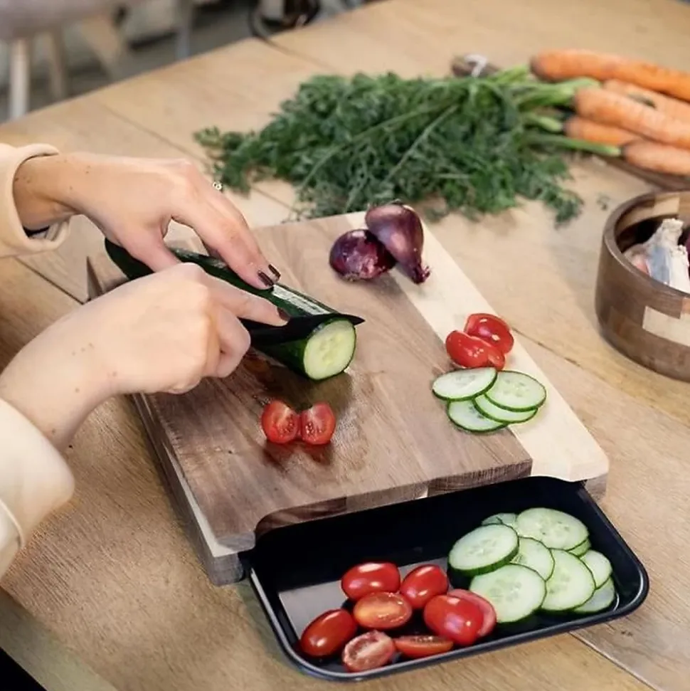 - Bac amovible compatible lave-vaisselle pour un nettoyage facile ; planche en bois à laver à la main pour préserver la finition.