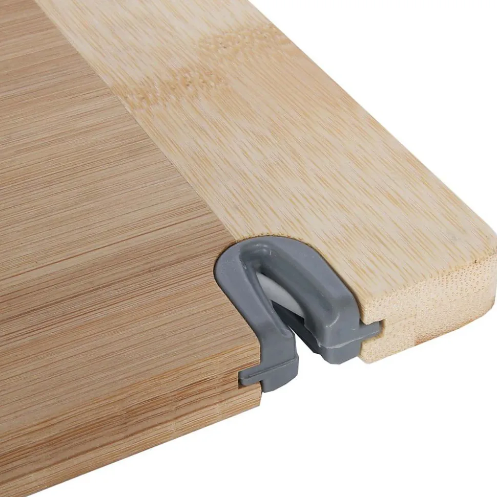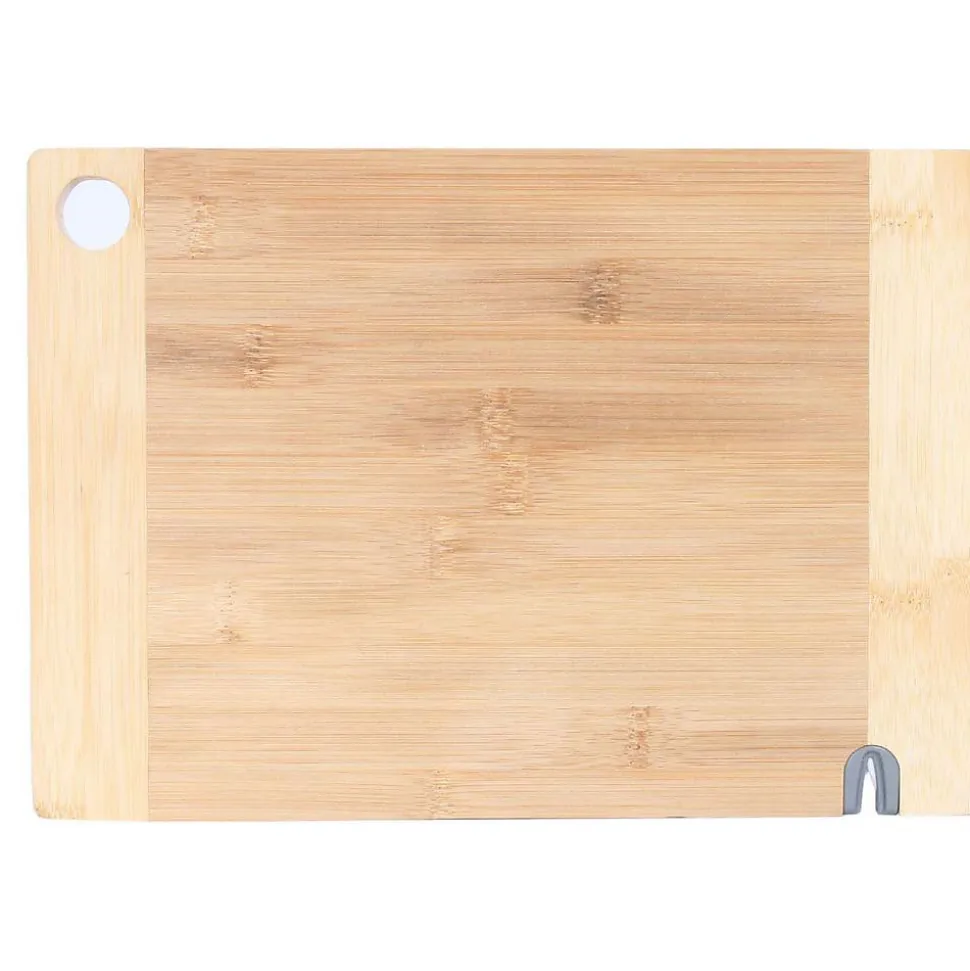 Aspect : Matériau principal = Bambou • Dimensions : Hauteur (en cm) = 1,70 • Longueur (en cm) = 33,10 • Profondeur (en cm) = 23,10 • Autres caractéristiques : Informations complémentaires = Avec aiguiseur intégré • Poids (en kg) = 0,82 • Planche à découper en bambou avec aiguiseur intégré