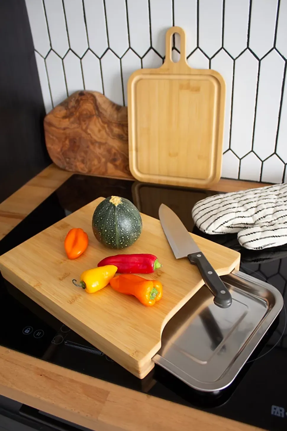 Planche à découper en bambou avec bac de récupération Box & Beyond