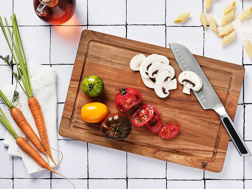 Faites de la planche ALVA un élément essentiel dans votre cuisine pour la préparation d’un plat.Avec ses caractéristiques bien pensées, cette planche est conçue pour simplifier votre expérience culinaire. Équipée d’une surface généreuse de 38 x 25 cm, elle vous offre suffisamment d’espace pour une découpe facile. La rigole intégrée à la planche capture les jus et les sauces lors de la découpe, maintenant votre espace de travail propre et préservant les saveurs de vos créations culinaires. Fabriquée en bois d’acacia, cette planche allie durabilité et beauté naturelle, faisant d’elle une authentique pièce maîtresse de votre cuisine. Pour optimiser la longévité de votre planche, il suffit de la nettoyer avec de l’eau savonneuse et une éponge avant de la sécher à l’aide d’un chiffon doux.