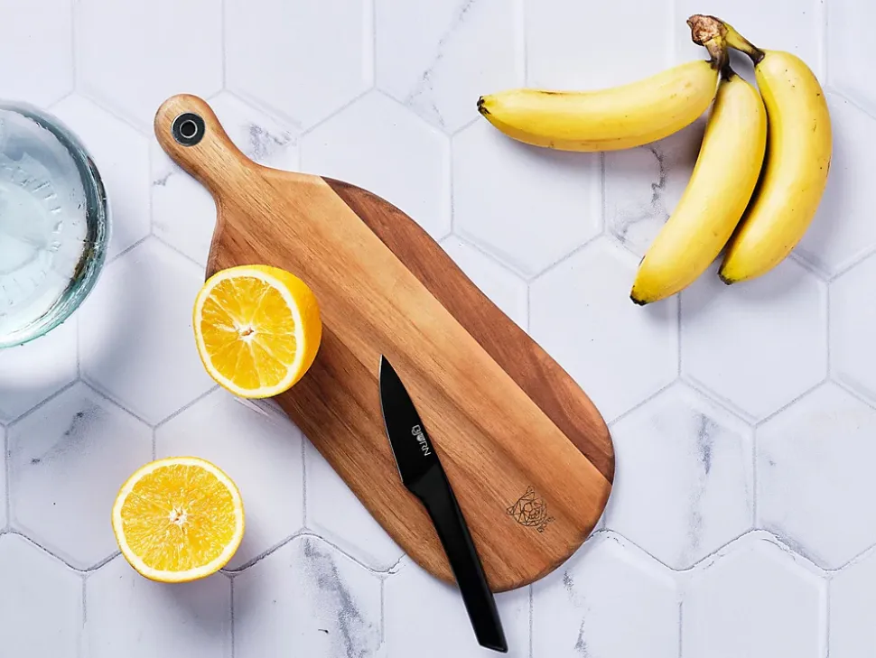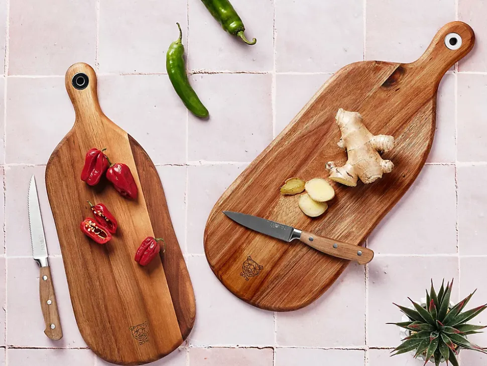 D’une surface de 41 x 16 cm, sa polyvalence est son atout majeur. Que ce soit pour la préparation minutieuse de vos ingrédients, la découpe de légumes, viandes et poissons ou pour le service à table, la planche FREJA se plie à toutes les occasions. Le détail qui fait la différence, c’est sa poignée qui donne un effet artisanale doté d’un anneau métallique pour une accroche facile sans abîmer le bois dans le temps. Conçue à partir de bois d’acacia à la finition huilée, la planche offre une esthétique qui évoque l’art de vivre. La couleur bois vernis ajoute une élégance naturelle à votre cuisine et une harmonie visuel qui s’accorde à tous les décors. Pour optimiser la longévité de votre planche, il suffit de la nettoyer avec de l’eau savonneuse et une éponge avant de la sécher à l’aide d’un chiffon doux.