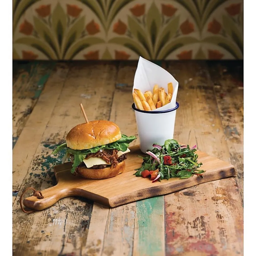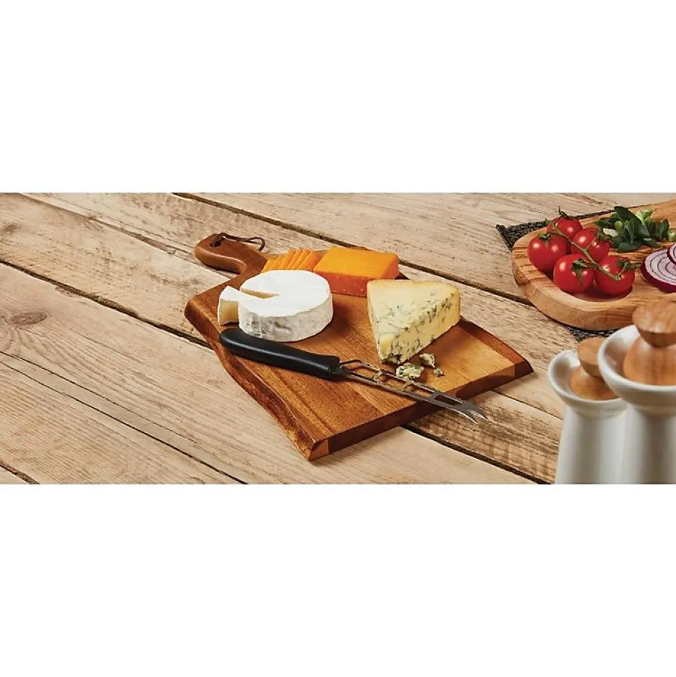 Planche de présentation en bois d’acacia La conception ondulée de cette magnifique planche apporte une touche naturelle à la table et se prête admirablement aux salades colorées et pains artisanaux.Idéale pour la présentation de charcuterie, fromage, tapas, hamburger ou plats à partager à l’apéritif !L’acacia est un bois durable résistant à l’eau et à l’huile, donc parfait à utiliser lors des repas.Fabriquée en bois massif, il n’y a pas de risque de poignée pouvant se détacher.Dimensions: 15(H) x 305(L) x 215(P)mmMatériel: AcaciaLongueur du manche 75mmLien en cuir attaché