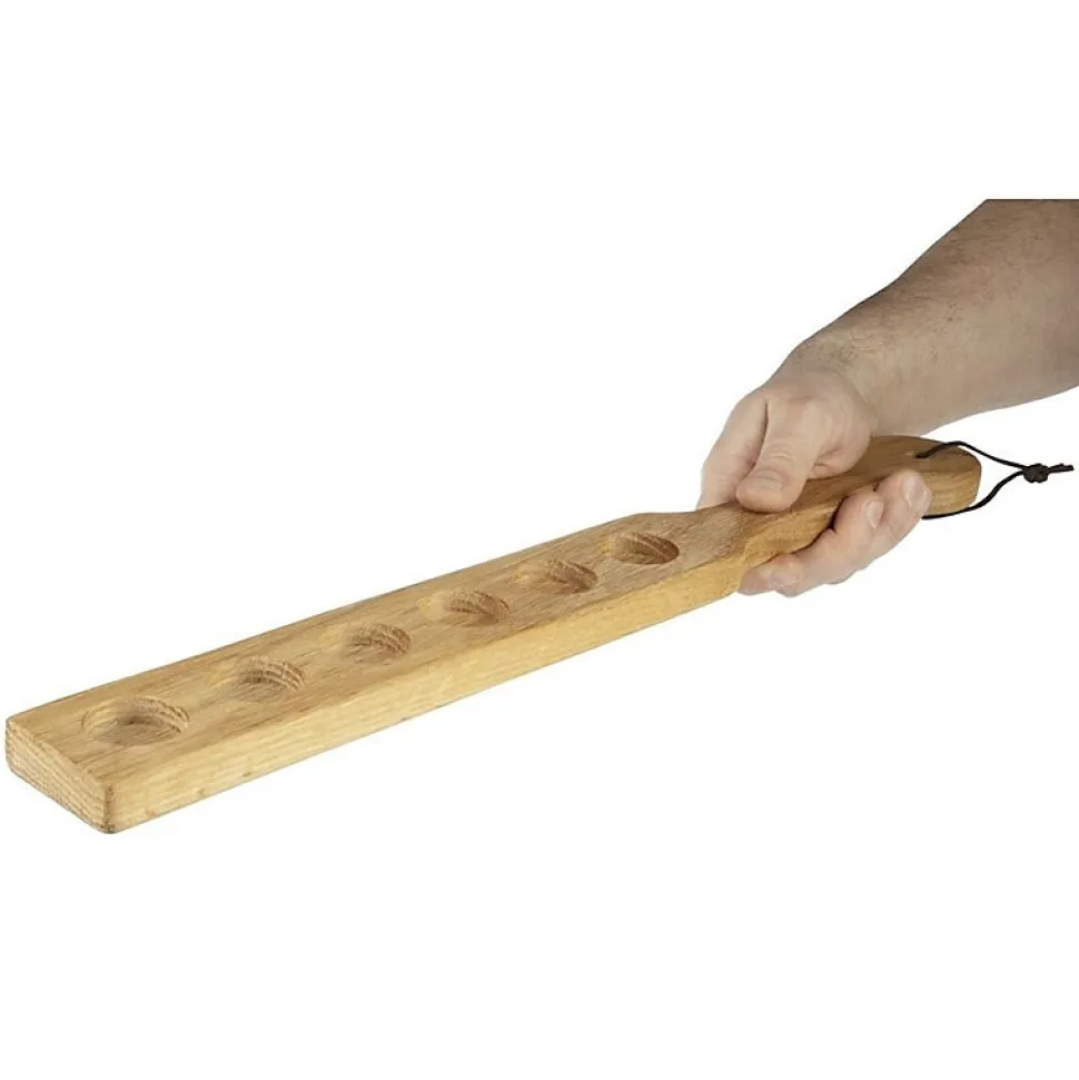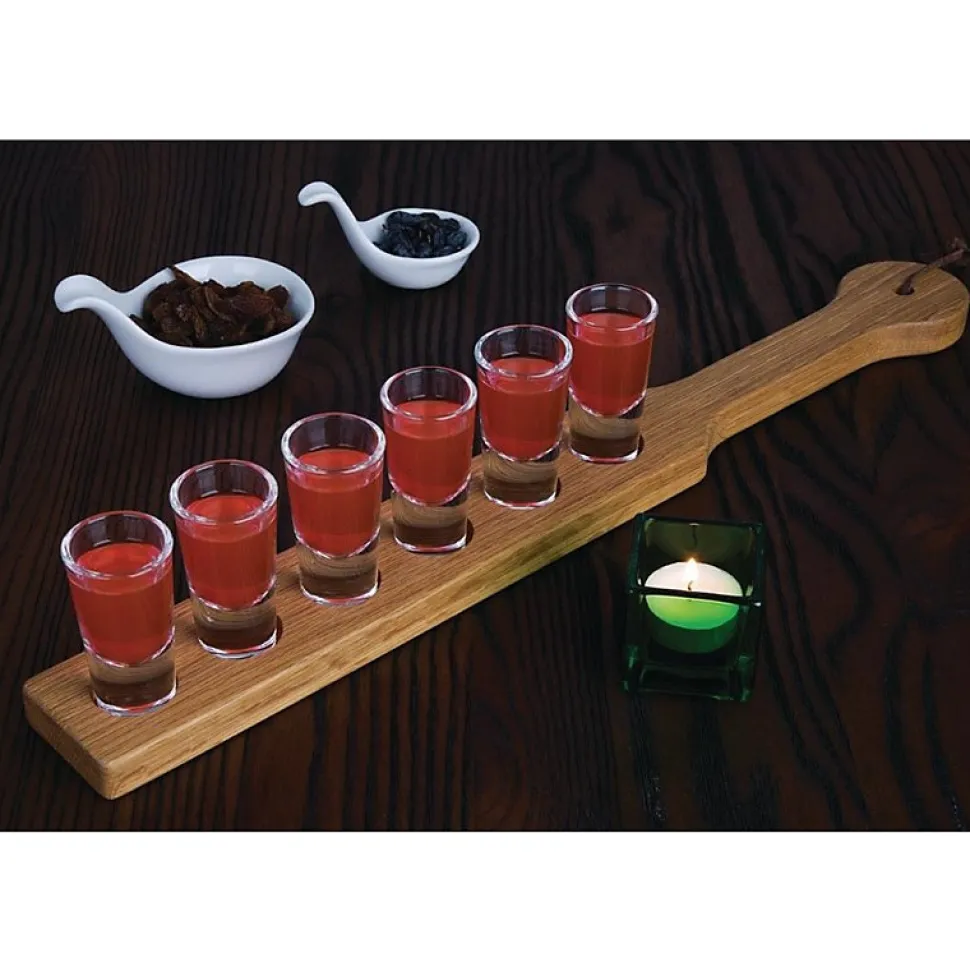 Plan pour 6 shooters Parfaite pour le service des shooters ou assortiments de desserts. Compartiments profonds pour loger les shooters (GF919, vendus séparément) en toute sécurité. Planche en chêne résistant. Comme pour tout produit en bois naturel, cette planche ne peut être nettoyée au lave-vaisselle ni immergée dans l’eau au risque de provoquer un gonflement du bois. Essuyez simplement la planche avec un chiffon propre, doux et humide. À enduire ponctuellement (en fonction de la fréquence d’utilisation) d’huile alimentaire.Dimensions: 20(H) x 500(L) x 60(P)mmMatériel: BoisPoids: 360 gEnduite d’une huile de protection (entretien régulier conseillé)Parfaite pour le service des shooters ou assortiments de dessertsPermet de transporter plusieurs verres facilementPoignée rigide pour le transportEn chêne solide et élégantRangement facile grâce à la largeur étroite et le lien de suspension