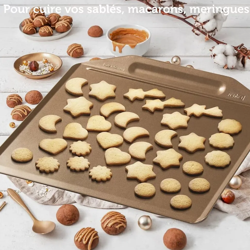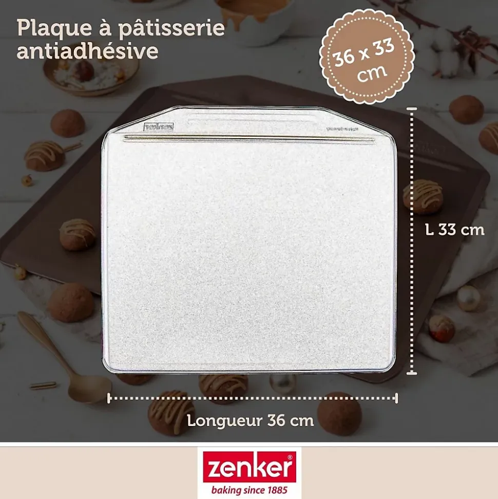 - DESCRIPTION : Zenker vous propose ce plat à four sans rebord en acier inoxydable renforcé céramique avec revêtement anti-adhésif, pour faire glisser facilement à la sortie du four vos biscuits de Noël, cookies, macarons et meringues
