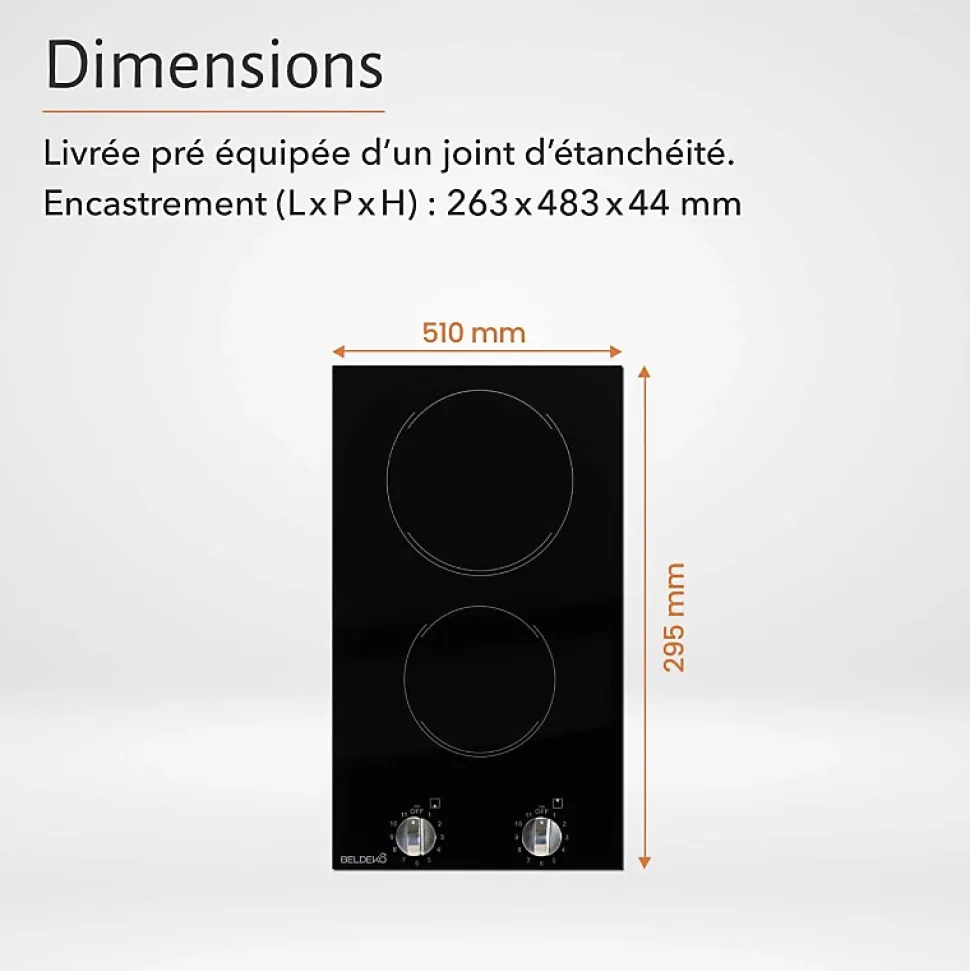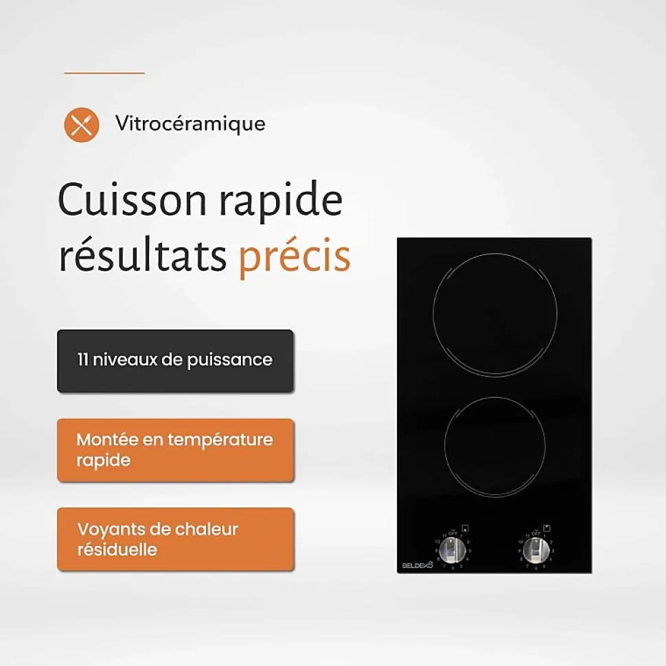 Plaque de cuisson 2 foyers VITROCÉRAMIQUE – TV2V-152 – Marque BELDEKO