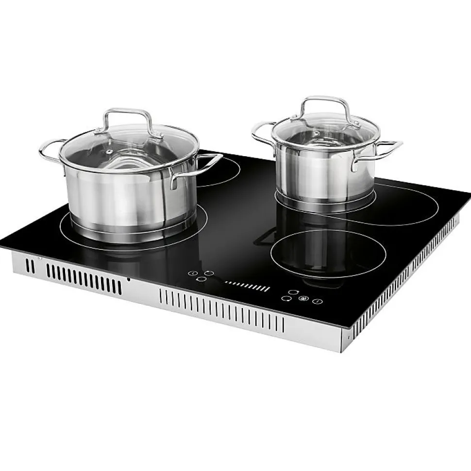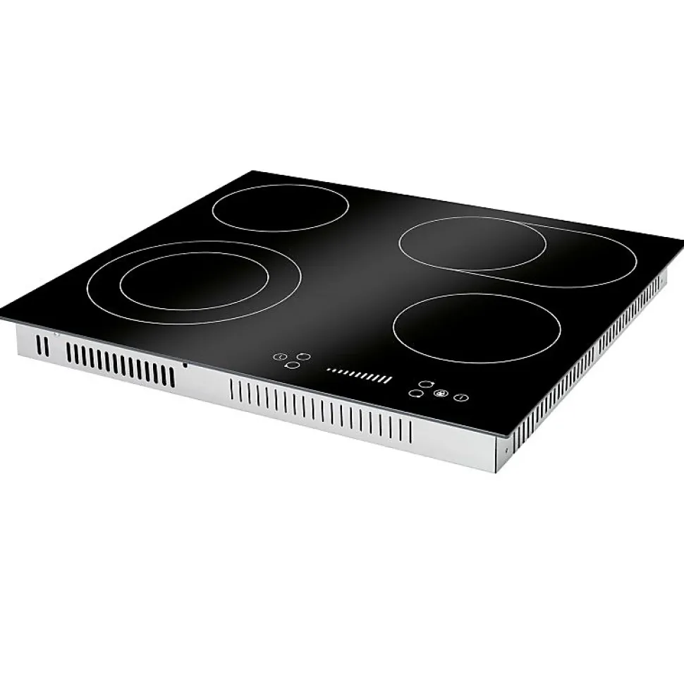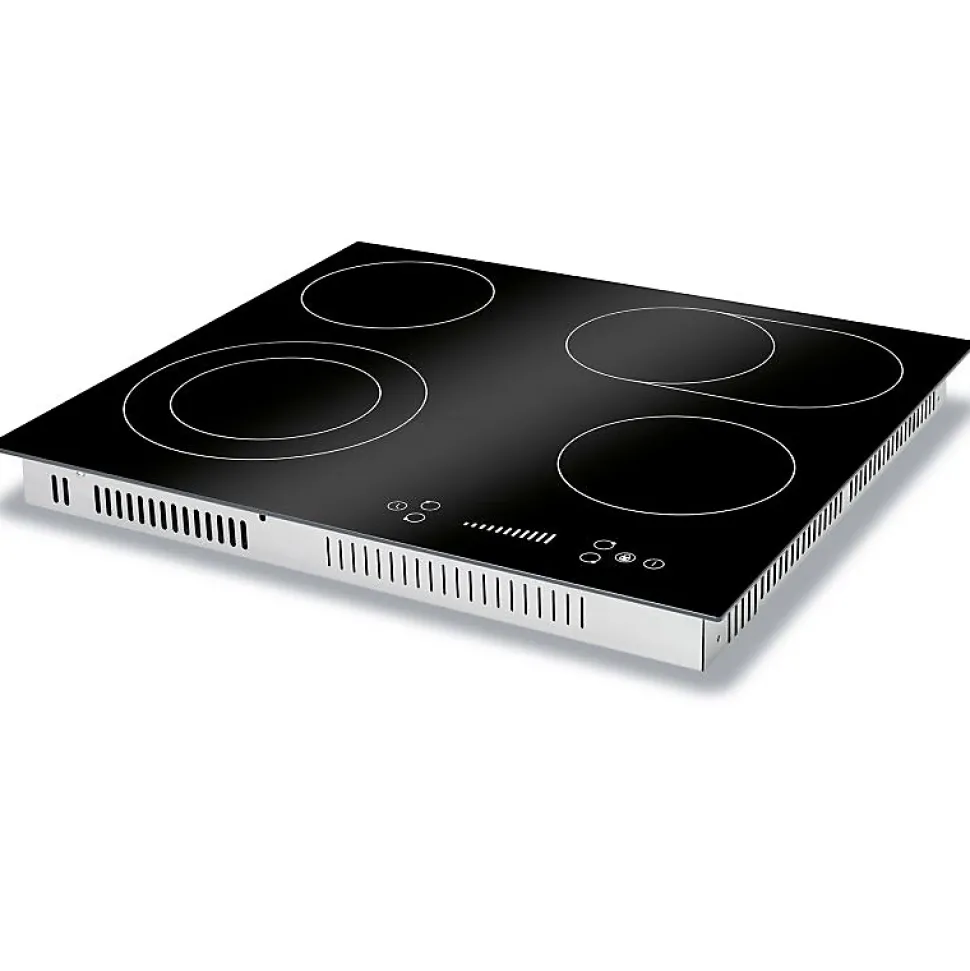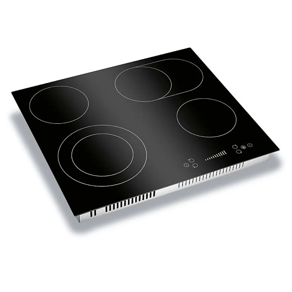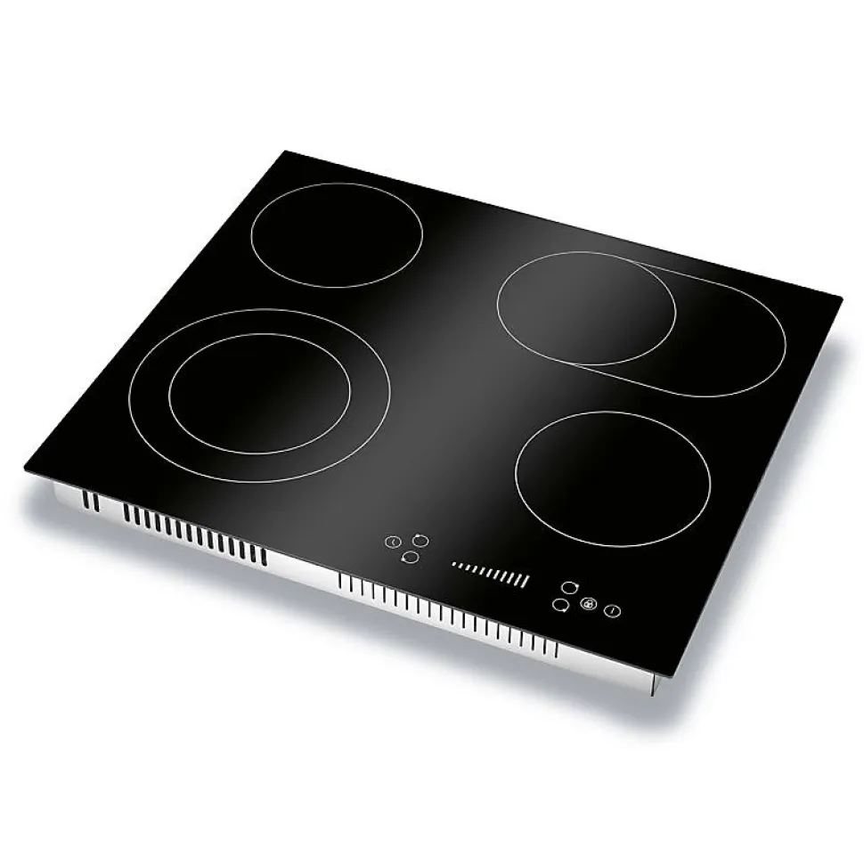 SpécificationsPlaque de cuisson vitrocéramique Autarkic, largeur 60 cm4 zones de cuisson2* Zone simple : Ø165 mm / 1200 W1* Double zone : Ø160/230 mm / 1000/1200 W1* Zone ovale : Ø165/270 mm / 1100/2000 WAffichage numérique des niveaux de cuisson et des fonctions de la minuterieFonctionnement par capteur « commande par effleurement/glissade ».9 niveaux de puissanceFonction minuterie 1 – 99 minutesArrêt automatique de la cuisson pour chaque zone de cuisson(peut être utilisé simultanément)Sécurité enfantsIndicateur de chaleur résiduelleProtection contre la surchauffeInterrupteur de sécuritéConception sans cadreCâble de raccordement inclusMesure intégrée (découpe)56,0 x 49,0 cm (L x P)Données techniquesTension de raccordement : 380-420 V 2N~ 50-60 HzConnexion à 2 phases (haute tension)Puissance nominale : 6600 WCourant nominal : 2 x 16 A