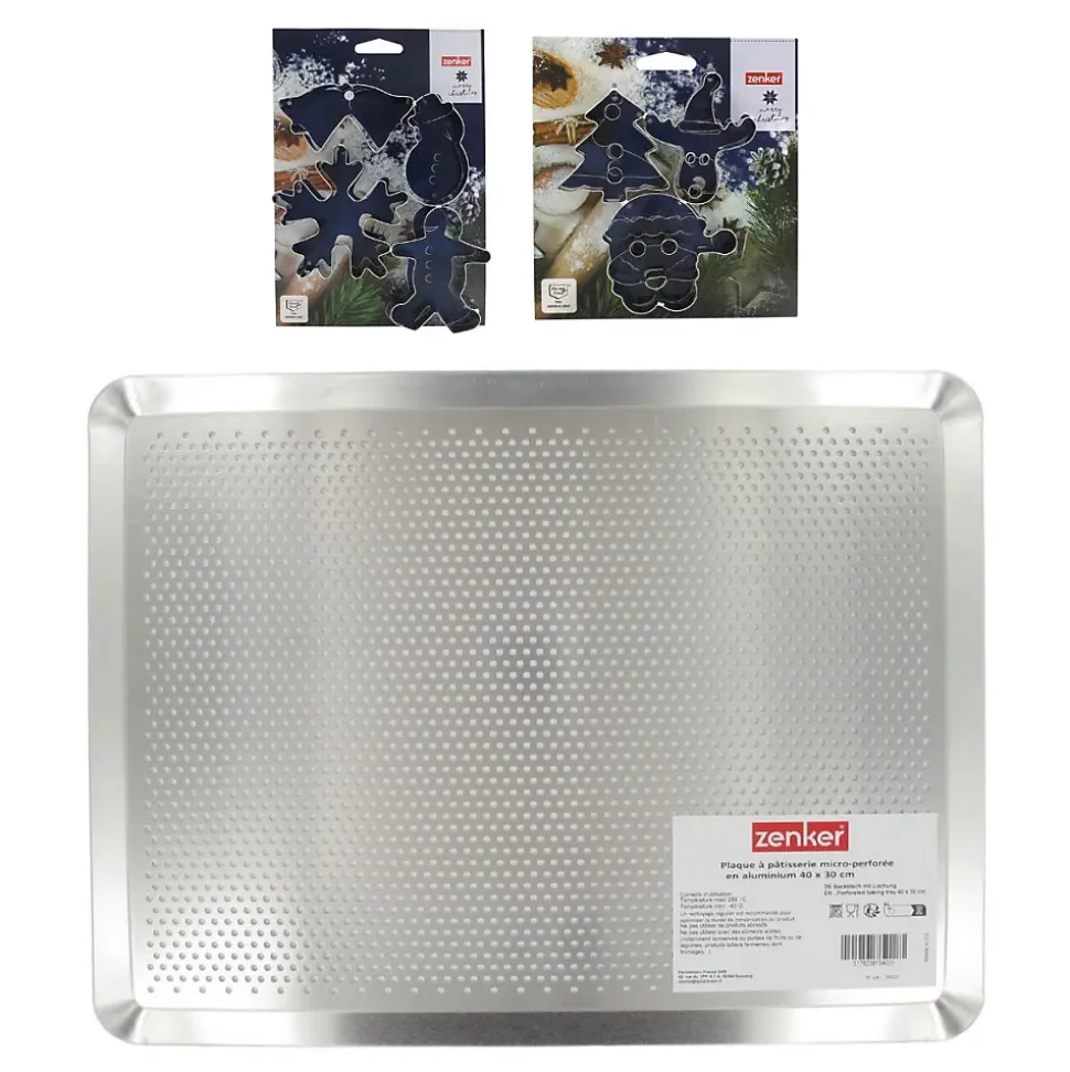 - DESCRIPTION : Zenker vous propose cette plaque de cuisson rectangulaire micro perforée et un lot de 7 emporte-pièces de Noël afin de réaliser et cuire de merveilleux biscuits de Noël à décorer et déguster en famille ou entre amis