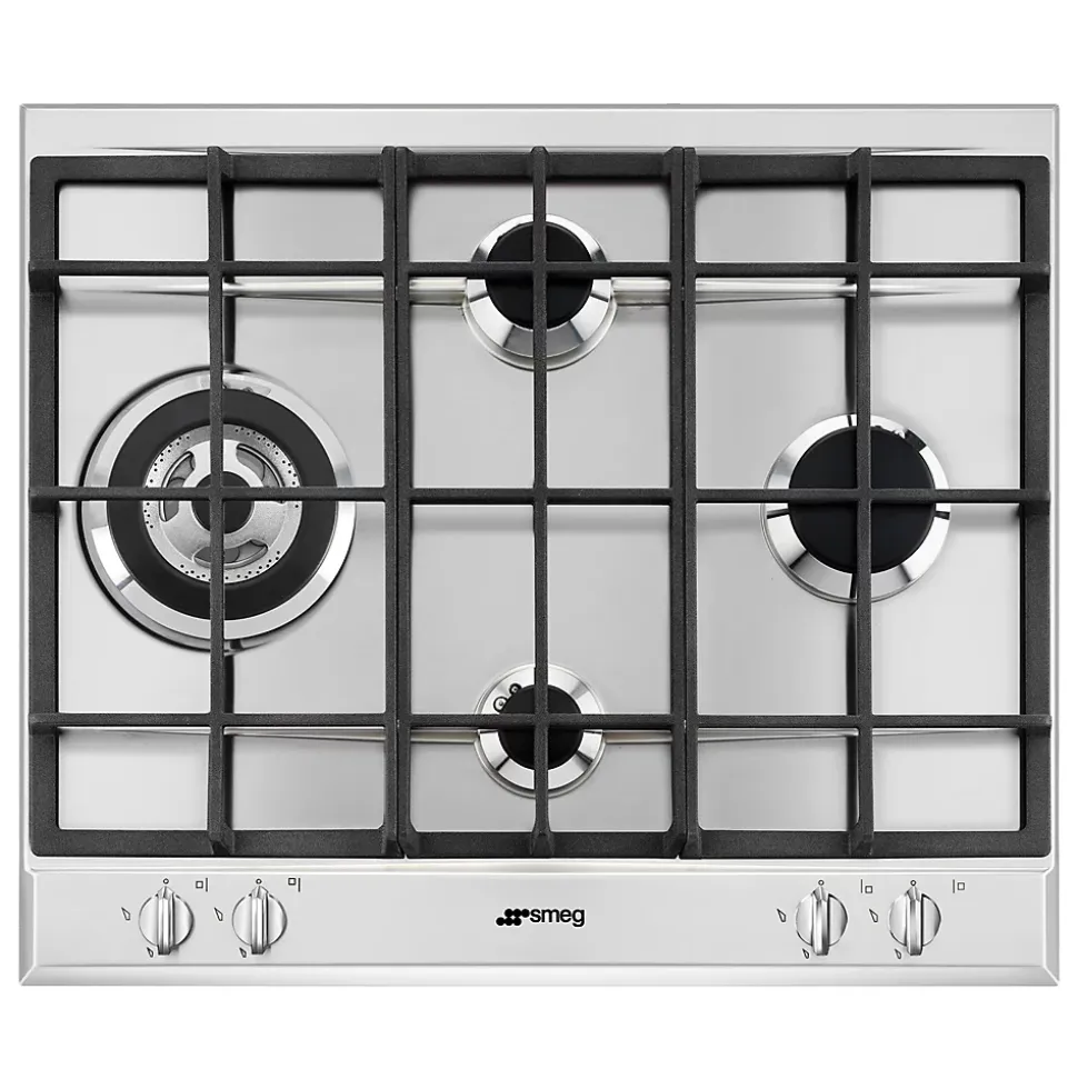 Plaque de cuisson gaz 4 foyers Smeg coloris argent l. 60 x P. 51 x H. 4,2 cm