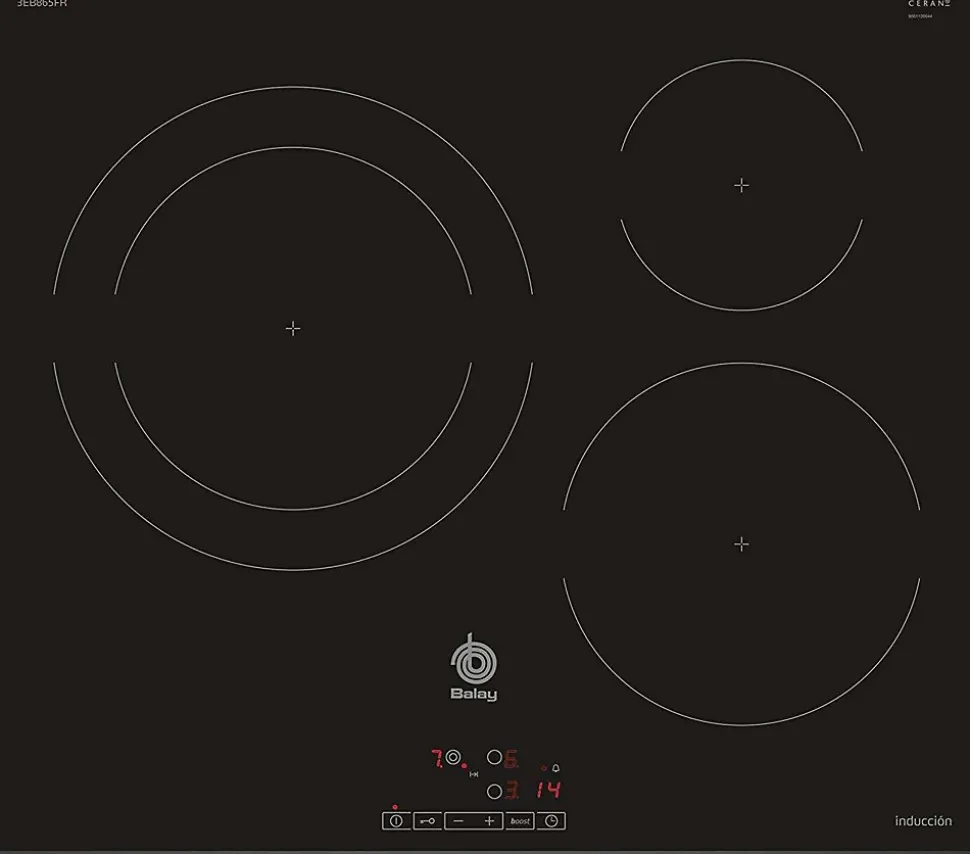 Balay – Induction 3 foyers – Table en verre noire Cette plaque de cuisson Balay. de couleur noire et dotee de 3 foyers a induction. est un equipement de cuisine pratique et moderne. Avec une puissance de 4600 watts. ce modele offre une cuisson rapide et efficace pour vous permettre de preparer vos plats favoris en un rien de temps. Grace a son systeme de chauffage electrique. la chaleur est repartie de maniere homogene pour une cuisson parfaitement maitrisee. Son design elegant en table en verre sintegre parfaitement dans toutes les cuisines. et son emplacement de commande frontale facilite son utilisation au quotidien. De plus. elle est equipee dun systeme de commande sensitive et dune securite enfant pour une tranquillite desprit optimale. Avec ses dimensions de 59.2 x 52.2 x 5.1 cm. cette plaque de cuisson Balay est ideale pour equiper votre cuisine et vous accompagner dans toutes vos preparations culinaires. – Marque Balay – Nombre de foyers 3 (induction) – Type denergie Induction – Puissance 4600 watt – Nature de la surface Table en verre – Emplacement de commande Frontale – Type de commande Sensitive – Dimensions dencastrement 59.2 x 52.2 x 5.1 cm – Poids 11 kg – Systeme de chauffage Electrique