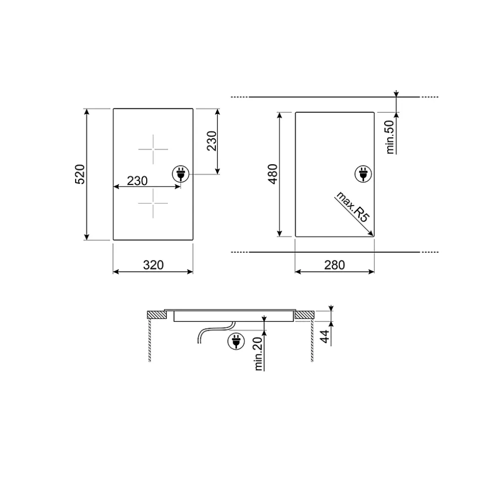 Plaque de cuisson en vitrocéramique 2 foyers Universel l. 30 cm SE232TX1 Smeg noir et cadre inox