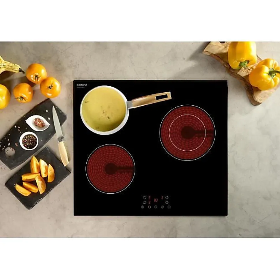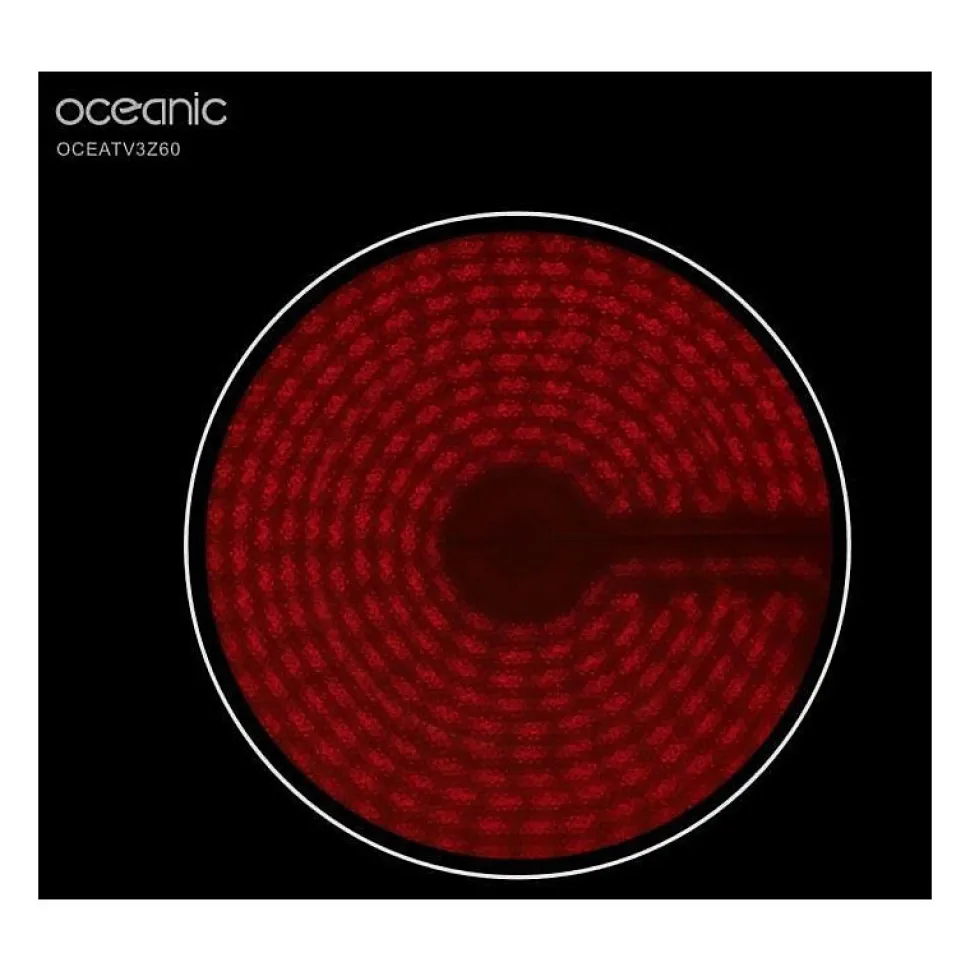Plaque vitrocéramique encastrable 3 foyers OCEANIC OCEATV3Z60, 5200 W, commandes tactiles, double zone extensible, minuterie 99 min et verrouillage enfant.