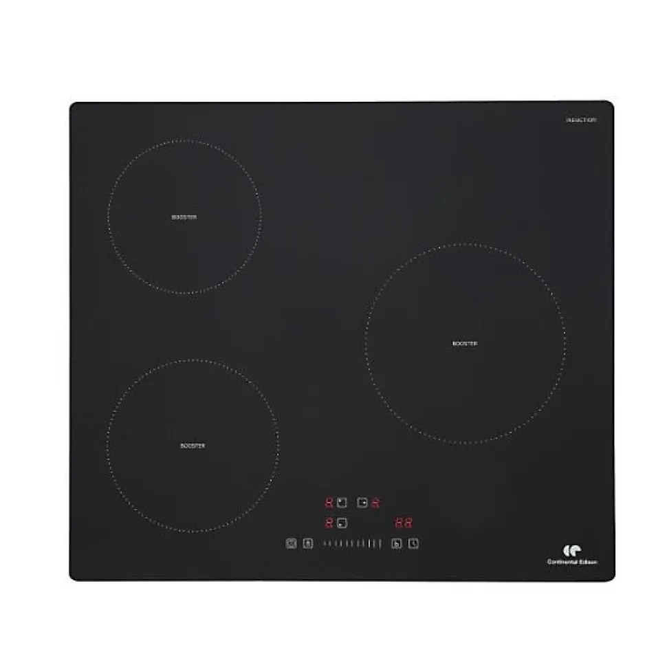Table de cuisson CONTINENTAL EDISON 3 foyers – 62000W – 3 boosters – 3 timers – noir 1 foyers 16cm – 1500W 1 foyer 18 cm – 2100W 1 foyers 21 cm – 2600W 9 niveau de puissance Fonction Boost Minuterie par foyers jusqu’a 99 minutes
