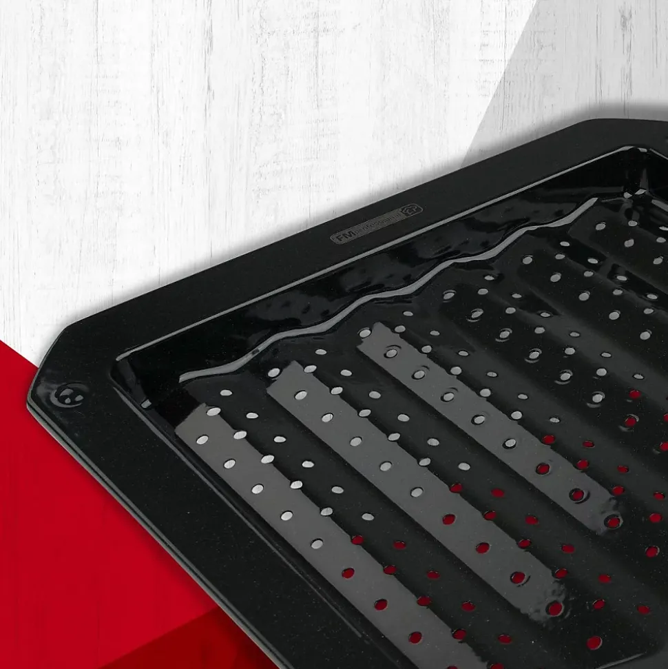 DESCRIPTION : FM Professional vous propose cette plaque pour le four ou le barbecue perforée afin de préparer de délicieux repas.LE PETIT + : Grâce à ce plat de barbecue ou de four ondulé et perforé vous pourrez récupérer le jus de la viande ou des légumes en mettant un plat en-dessous lors de la cuisson.COMPOSITION : Cette plaque de cuisson est fabriquée en acier et possède un renforcement en émail afin de lui permettre de résister à des températures très fortes.DIMENSIONS : Le plat à barbecue mesure 38 cm de long et 33 cm de large pour être compatible avec votre barbecue et votre four afin de l’utiliser toute l’année.UTILISATION : De haute qualité, cette plaque de cuisson résiste à des températures extrêmes jusqu’à 400°C et elle passe au lave-vaisselle.FM Professional est une marque du groupe Fackelmann, destinée aux professionnels de la cuisine et de la pâtisserie. FM Professional regroupe des ustensiles de cuisine et de pâtisserie par lots qui sont intéressants pour les professionnels du secteur.Les ustensiles de pâtisserie et de cuisine proposés par FM Professional sont fabriqués en acier inoxydable de haute qualité et sont très résistants. La marque souhaite apporter la qualité des ustensiles professionnels dans toutes les cuisines.