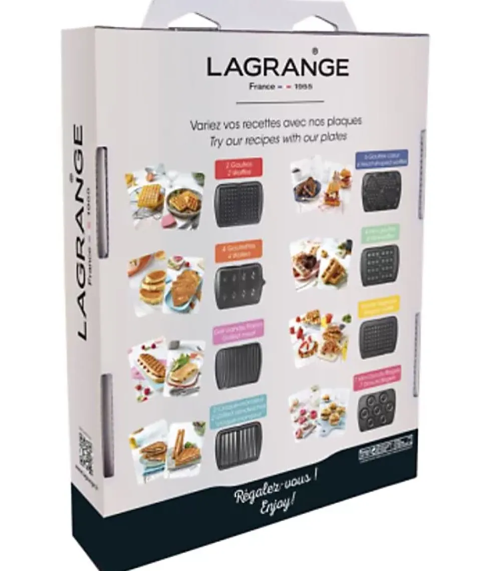 Plaques 2 gaufres pour la gamme premium Lagrange – Pour varier les plaisirs, Lagrange propose en accessoires 3 types de plaques pour son gaufrier Premium : plaques gaufres, gaufrettes ou croque monsieur. – Type de plaques : pour 2 gaufresCompatibilité : Lagrange gamme Premium GaufresPlaques massives en fonte d’aluminiumRevêtement antiadhésif double couche haute résistance