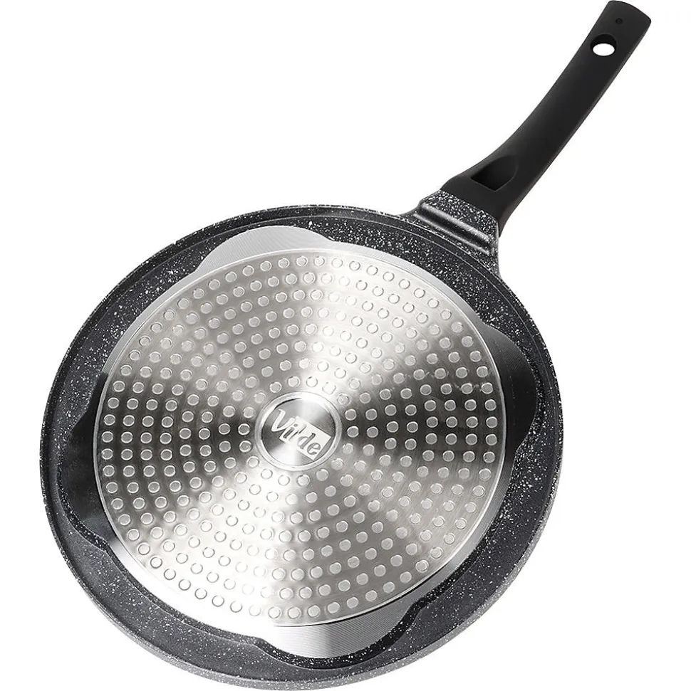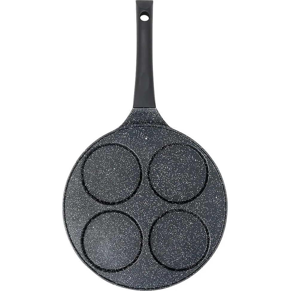 Découvrez la Poêle À Œufs En Granit 4 Alvéoles Black Line 26 cm, l’ustensile idéal pour réussir des œufs au plat parfaitement ronds, des pancakes et des mini-crêpes. Dotée de quatre alvéoles dédiées de 9 cm, elle offre un rendu uniforme et esthétique à chaque cuisson. Conçue en aluminium avec un revêtement antiadhésif granit noir, cette poêle assure une cuisson saine avec très peu de matière grasse tout en garantissant une excellente durabilité et un glissage optimisé. Sa poignée soft touch, noire et résistante, reste froide pendant la cuisson et intègre un orifice de suspension pratique pour un rangement facile sur le rélingue ou dans l’armoire. Grâce à une conduction thermique homogène, la chaleur se répartit rapidement et uniformément sur toute la surface, vous faisant gagner du temps et vous permettant d’obtenir des plats parfaitement cuits et réguliers. Caractéristiques principales Quatre alvéoles dédiées de 9 cm pour des œufs, pancakes et mini-crêpes parfaitement ronds Revêtement antiadhésif granit noir sur une base en aluminium pour une cuisson efficace et réduisant l’usage d’huile Poignée soft touch non chauffante avec trou de suspension pour un rangement pratique Conduction thermique homogène et rapide pour une cuisson maîtrisée Compatible avec toutes les cuisinières (gaz, électrique, céramique, halogène et induction) et lave-vaisselle Design intemporel de la ligne Black Line, produit original Vilde, conforme aux normes européennes Conçue pour durer et facilement entretenue, cette poêle allie style et fonctionnalité pour rehausser votre cuisine quotidienne. Commandez dès maintenant et offrez à vos matins une touche professionnelle et gourmande.