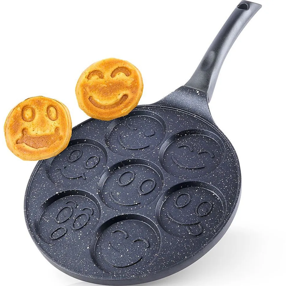 La poêle à œufs granit GRANDE de 27 cm avec 7 cavités est idéale pour préparer des œufs au plat et des pancakes parfaitement cuits. Conçue pour les matins pressés, elle allie praticité, sécurité et cuisson homogène. Caractéristiques Diamètre: 27 cm Alvéoles: 7 cavités de 8 cm chacune Matériau: corps en aluminium Revêtement: granit Pfluon granit, antiadhésif Santé: sans PFOA et PTFE Compatibilité: compatible avec tous les types de plaques, y compris l’induction Manche: non chauffant, en plastique résistant Origine: produit par la marque tchèque Orion, conforme aux normes européennes Avantages Cuisson uniforme: la chaleur se répartit sur toute la surface pour des œufs et des pancakes dorés et réguliers. Cuisson plus saine: le revêtement antiadhésif permet de cuisiner avec peu ou pas de matière grasse. Énergie et temps gagnés: une excellente conductivité thermique réduit les pertes de chaleur et le temps de cuisson. Polyvalence et sécurité: utilisable sur tous les feux, y compris l’induction, avec une poignée qui reste fraîche pendant la cuisson. Entretien simplifié: surface antiadhésive qui se nettoie facilement après utilisation.