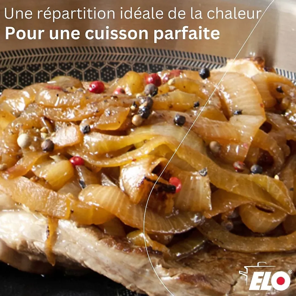 - DESCRIPTION : Poêle à frire Elo Relief Solutions 24 cm, en acier inoxydable 18/10 et aluminium, avec revêtement antiadhésif ELODUR Select sans PFAS, tous feux