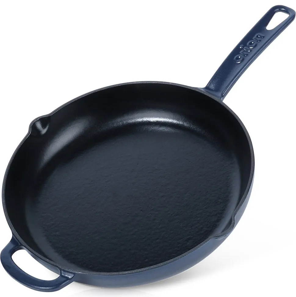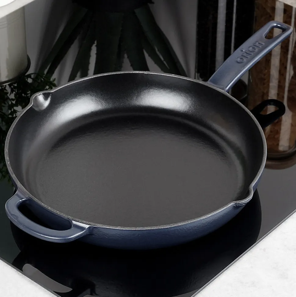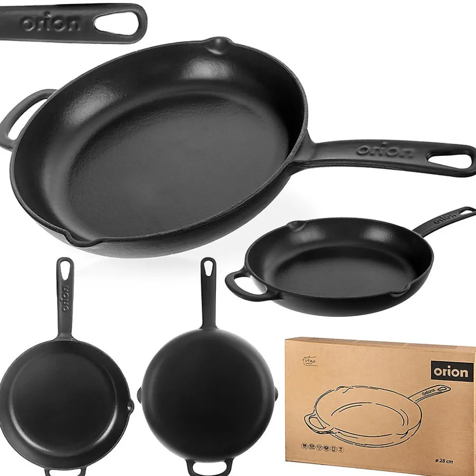 Découvrez la Poêle en fonte émaillée Litina 28 cm, une pièce polyvalente et robuste pour toutes vos cuissons. Conçue pour offrir une répartition rapide et homogène de la chaleur, elle vous permet de saisir, rôtir et mijoter vos plats avec une précision professionnelle. Émaillée en noir à l’intérieur et avec une coque extérieure bleu/grenat, cette poêle allie élégance et praticité. L’émail facilite le démarrage et le service, tout en simplifiant nettement le nettoyage. La fonte retient la chaleur et la conserve longtemps, garantissant des plats bien chauds et savoureux jusqu’au dernier service. Équipements et design pratique: Diamètre 28 cm, dimensions extérieures: longueur avec poignées 46,5 cm, largeur 29,5 cm, hauteur de la poêle 4,8 cm et 6,3 cm avec la poignée. Deux poignées pour un transport sûr et stable. Deux becs verseurs pour servir facilement vos plats. Orifice dans la poignée pour la suspension et le rangement. Série Litina – une fabrication robuste et durable, idéale pour un usage quotidien. Polyvalente et adaptée à toutes les cuisines, elle convient aussi bien à la cuisson à la poêle qu’au four. Utilisable sur gaz, électrique, vitrocéramique, halogène et induction, elle supporte les hautes températures et est prête pour saisir, dorer, puis terminer vos plats au four. Vous pouvez même l’employer pour des pizzas, des pommes de terre rôties, des plats de viande et de légumes, ou servir directement à table. Entretien et durabilité: l’émail facilite le nettoyage et empêche les aliments d’adhérer, tout en offrant une résistance élevée à la corrosion. Bien qu’elle soit compatible lave-vaisselle, un lavage à la main reste recommandé pour prolonger la durée de vie du revêtement. Produit original de la marque tchèque Orion, fabriqué selon les normes européennes, pour des cuissons fiables et des résultats constants à chaque utilisation.