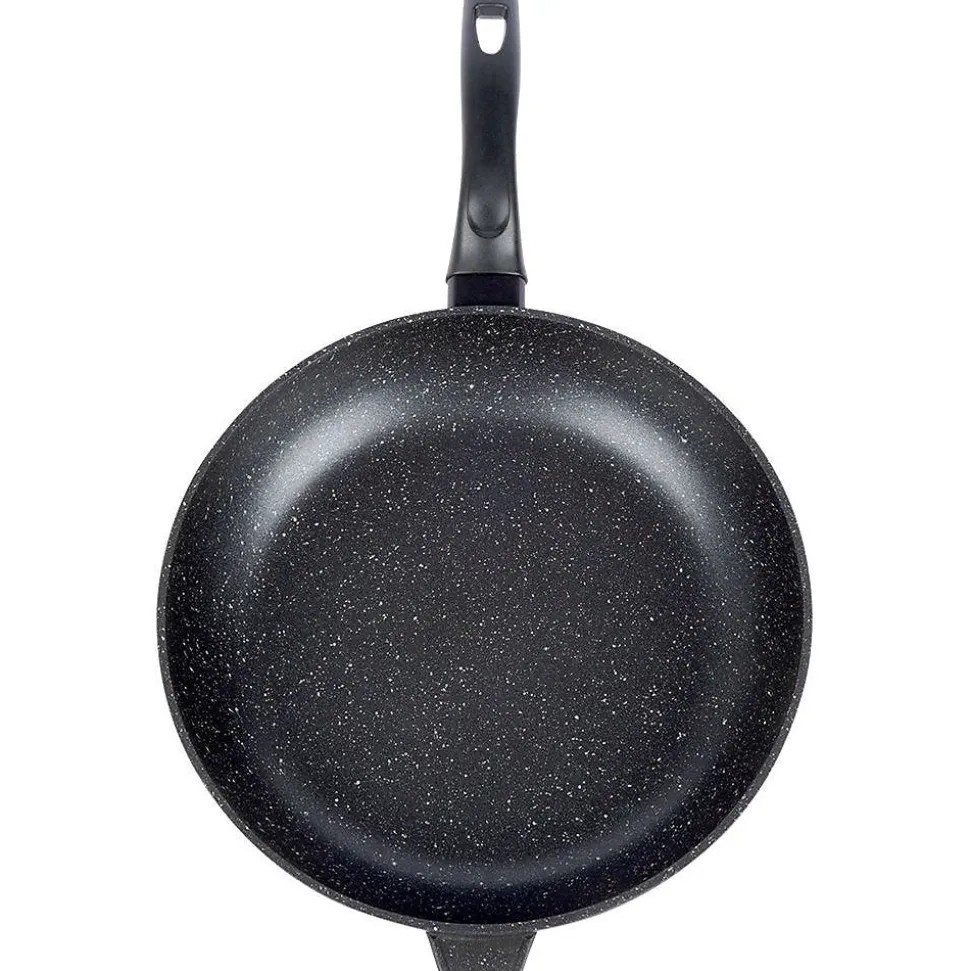 La poêle granit GRANDE de 32 cm est l’outil idéal pour griller et braiser, conçue pour les cuisiniers qui recherchent durabilité, polyvalence et cuisson saine avec peu de matière grasse. Caractéristiques Diamètre de cuisson: 32 cm Dimensions externes: longueur 54 cm, hauteur 6,5 cm, hauteur avec le manche 9 cm Matériau: aluminium moulé pour une excellente résistance et une répartition thermique efficace Manche: robuste, en plastique noir, conçu pour rester frais à la prise Poids et robustesse: lourde et massive, assurant stabilité durant la cuisson Revêtement: antiadhésif granit Pfluon Granit, sans PFOA et sans PTFE Répartition de la chaleur: cuisson uniforme sur l’intégralité de la surface Usage: idéale pour friture et braisage, permet une cuisson avec peu de matière grasse Compatibilité: gaz, électrique, vitrocéramique, halogène et induction Entretien: lavable au lave-vaisselle Accessoire inclus: sous-plat de protection pour éviter les rayures lors du rangement Esthétique et durabilité: design GRANDE avec des matériaux de haute qualité, conçu pour durer Origine: produit original de la marque tchèque Orion, fabriqué selon les normes européennes Bénéfices Cuisson plus saine grâce au revêtement granit antiadhésif qui nécessite peu ou pas d’huile Polyvalente pour friture et braisage, permettant d’obtenir des plats savoureux et tendres Chaleur répartie de manière homogène pour éviter les points chauds et réduire le temps de cuisson Économie d’énergie et de temps grâce à une cuisson rapide et efficace Aspect pratique et facile à entretenir: nettoyage simplifié et possibilité de lave-vaisselle Manipulation sûre grâce au manche non chauffant et à la stabilité de la poêle Compatibilité avec toutes les sources de chaleur, y compris l’induction, pour une utilisation universelle Sécurité et rangement facilité grâce au sous-plat de protection inclus Design intemporel qui s’intègre à toutes les cuisines tout en offrant une durabilité à long terme