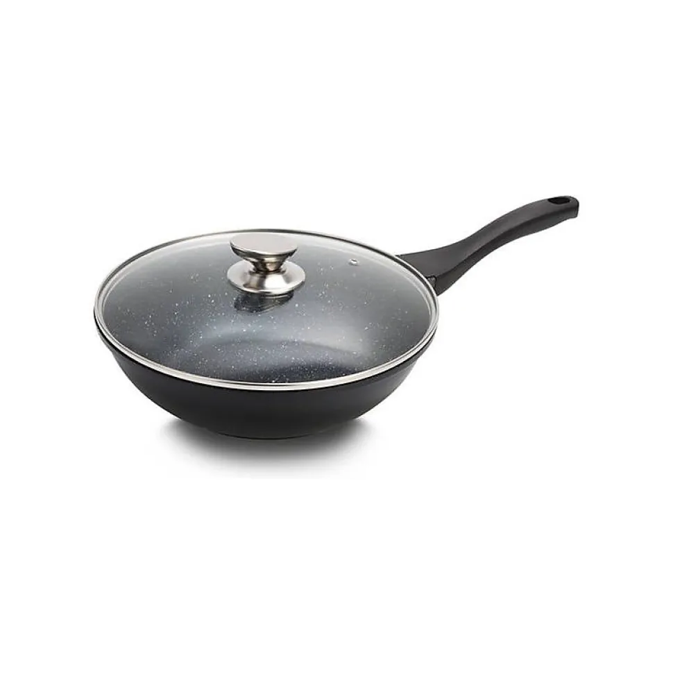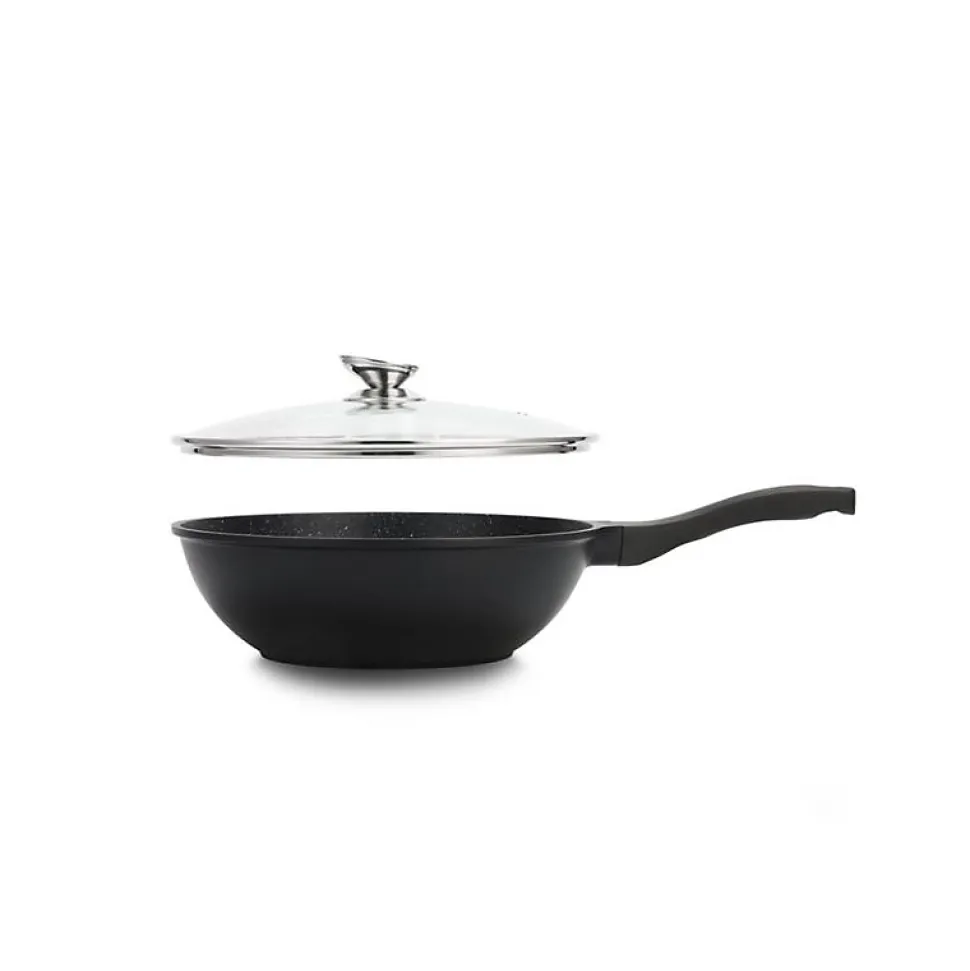 Wok en fonte 30 cm – Revêtement antiadhésif Greblon Ce wok en fonte de 30 cm et d’une capacité de 3,7 litres est conçu pour une cuisson homogène et efficace. Son revêtement Greblon en marbre assure une surface antiadhésive hautement résistante, idéale pour une cuisine saine avec peu ou pas de matière grasse. Grâce à sa poignée souple ergonomique, il offre une prise en main confortable et sécurisée, facilitant le maniement pendant la cuisson. Compatible avec tous les types de feux (gaz, électrique, céramique, halogène et induction), ce wok est un outil polyvalent et indispensable pour tous les amateurs de cuisine recherchant performance et durabilité. Son design élégant et robuste en fait un choix idéal pour une cuisine quotidienne ou des préparations plus élaborées. Un incontournable pour des plats savoureux et réussis !