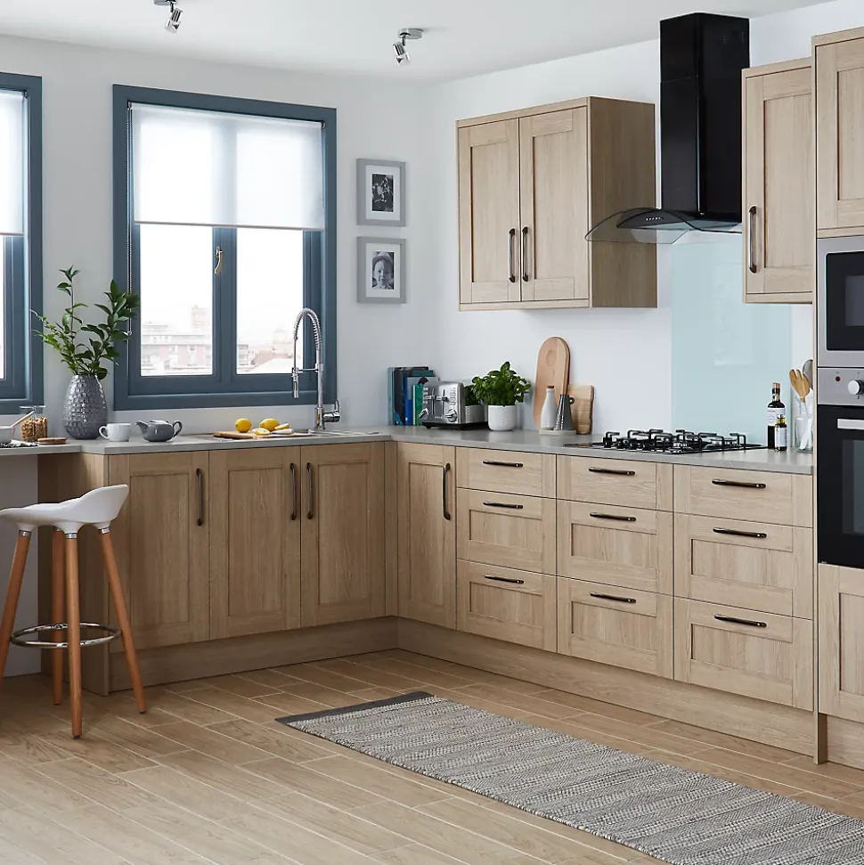 Notre gamme présente les dernières tendances en matière de styles, de couleurs et de finitions de porte. Le tout parfaitement coordonné avec notre gamme GoodHome pour la cuisine. Nos façades de porte de style « Shaker » Alpinia sont bien proportionnées, simples et fonctionnelles. Elles mélangent des couleurs neutres à différentes textures et finitions, pour apporter une sensation d’espace et de lumière dans votre cuisine. La finition chêne est chaleureuse, vos invités se sentiront à l’aise dès qu’ils entreront dans votre cuisine.