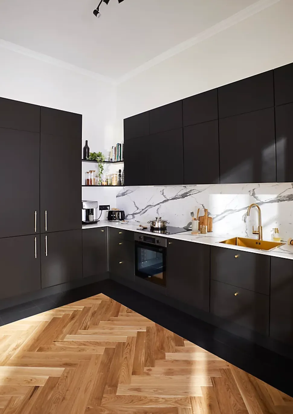 Notre gamme présente les dernières tendances en matière de styles, de couleurs et de finitions de porte. Le tout se coordonne parfaitement avec le reste de notre gamme GoodHome pour la cuisine. La gamme de portes stevia inclut à la fois des finitions brillantes qui reflètent la lumière et la couleur de votre mur et une finition mate qui limite les traces de doigts et les imperfections, tout en créant une finition uniforme sous tous les angles. La finition noir mat élégante de cette façade confèrera à votre cuisine un aspect moderne.